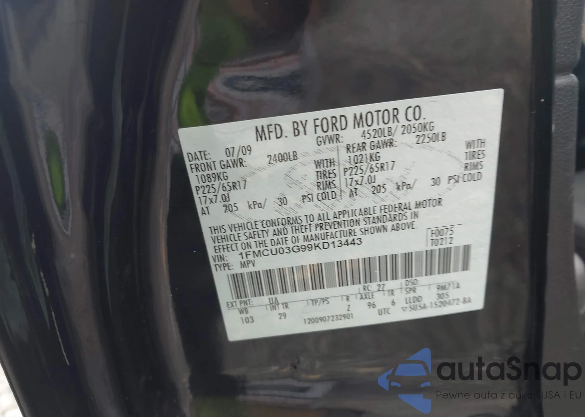 LOT: 44356598 VIN: 1FMNU40LX1EC64709