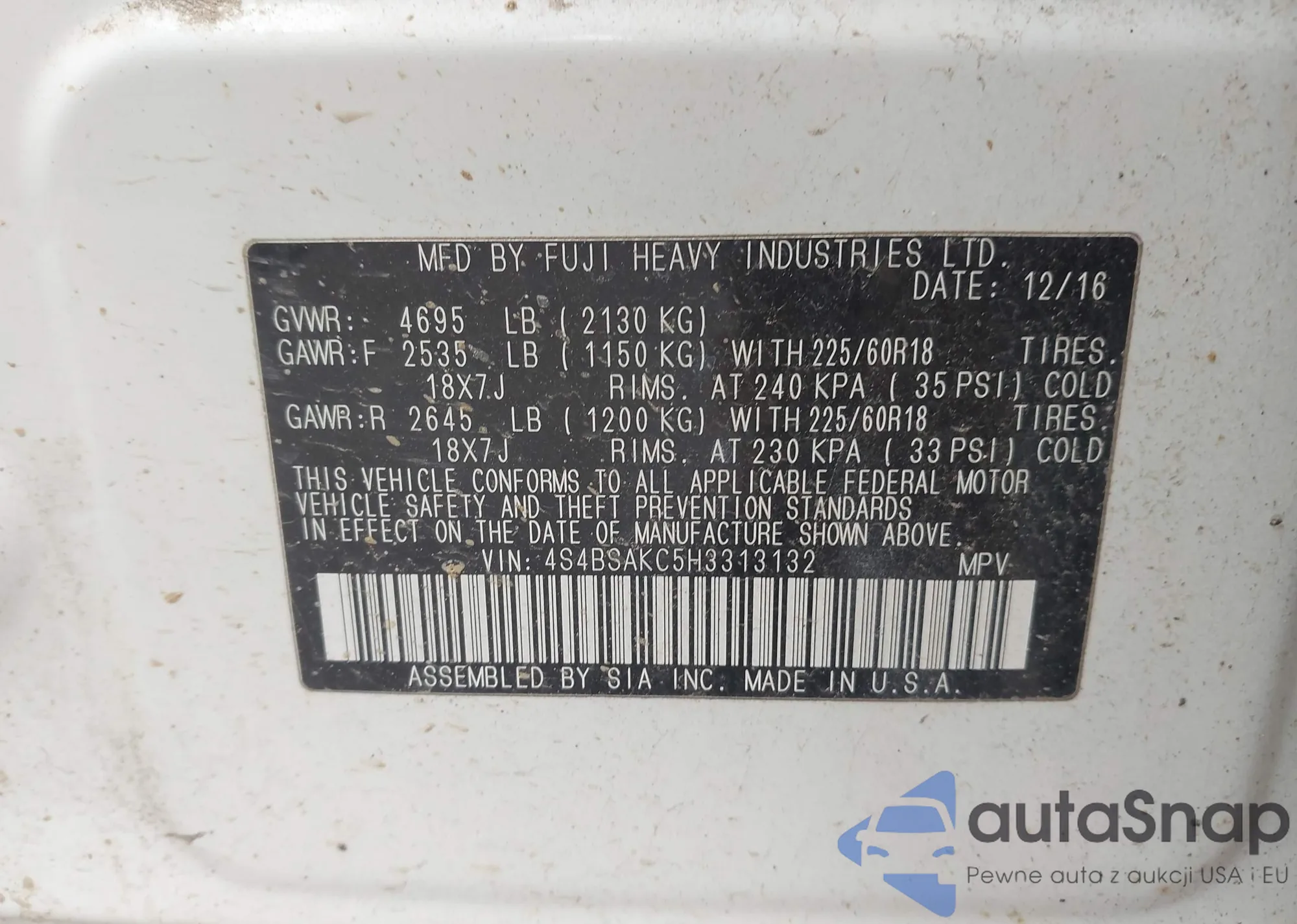 • VIN 4S4BSAKC5H3313132