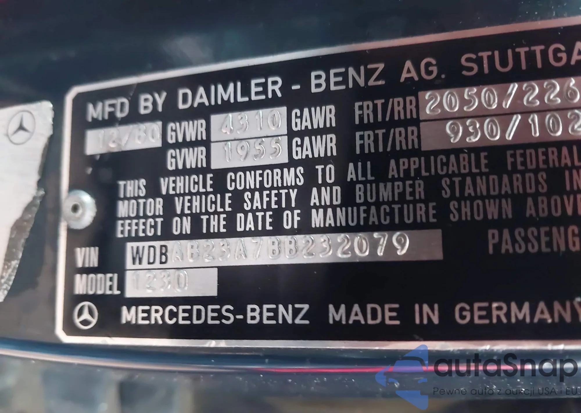 VIN: WDBAB23A7BB232079