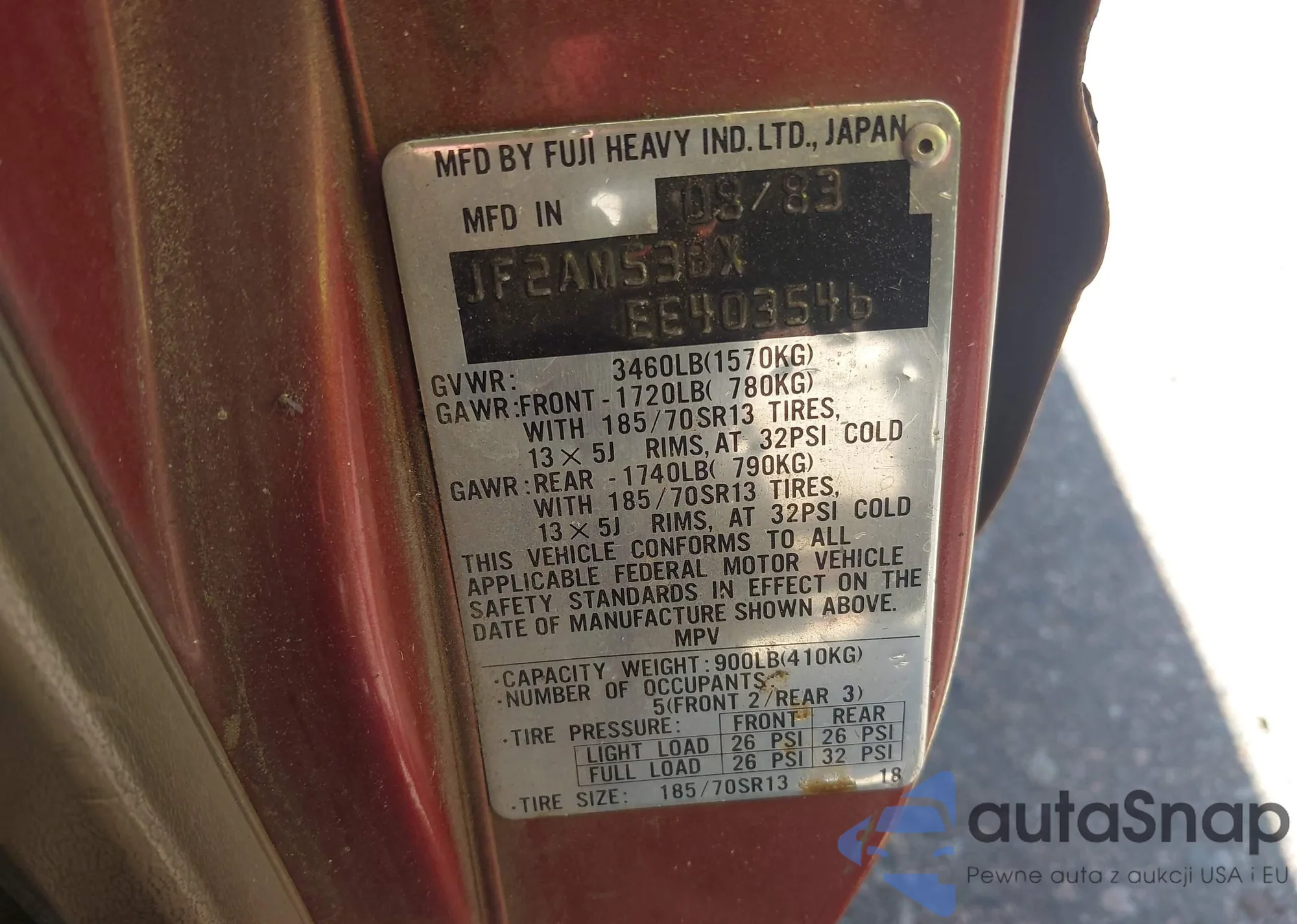 Samochód Subaru Leone 1984 (VIN JF2AM53BXEE403546) sprzedaje go niezweryfikowany sprzedawca. Zalecamy raport Carfax i potwierdzenie możliwości rejestracji pojazdu przed zakupem.