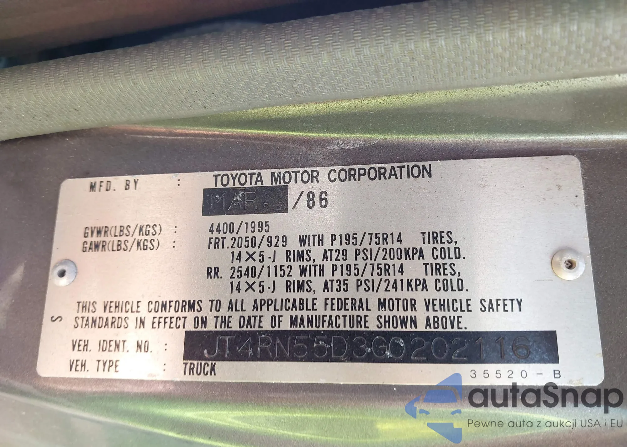Toyota Pickup 1986 – Historia pojazdu (sprzedany na IAAI)