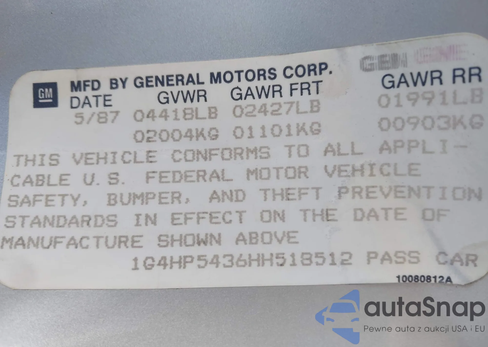 Samochód Buick LeSabre 1987 (VIN 1G4HP5436HH518512) sprzedaje go niezweryfikowany sprzedawca. Zalecamy raport Carfax i potwierdzenie możliwości rejestracji pojazdu przed zakupem.