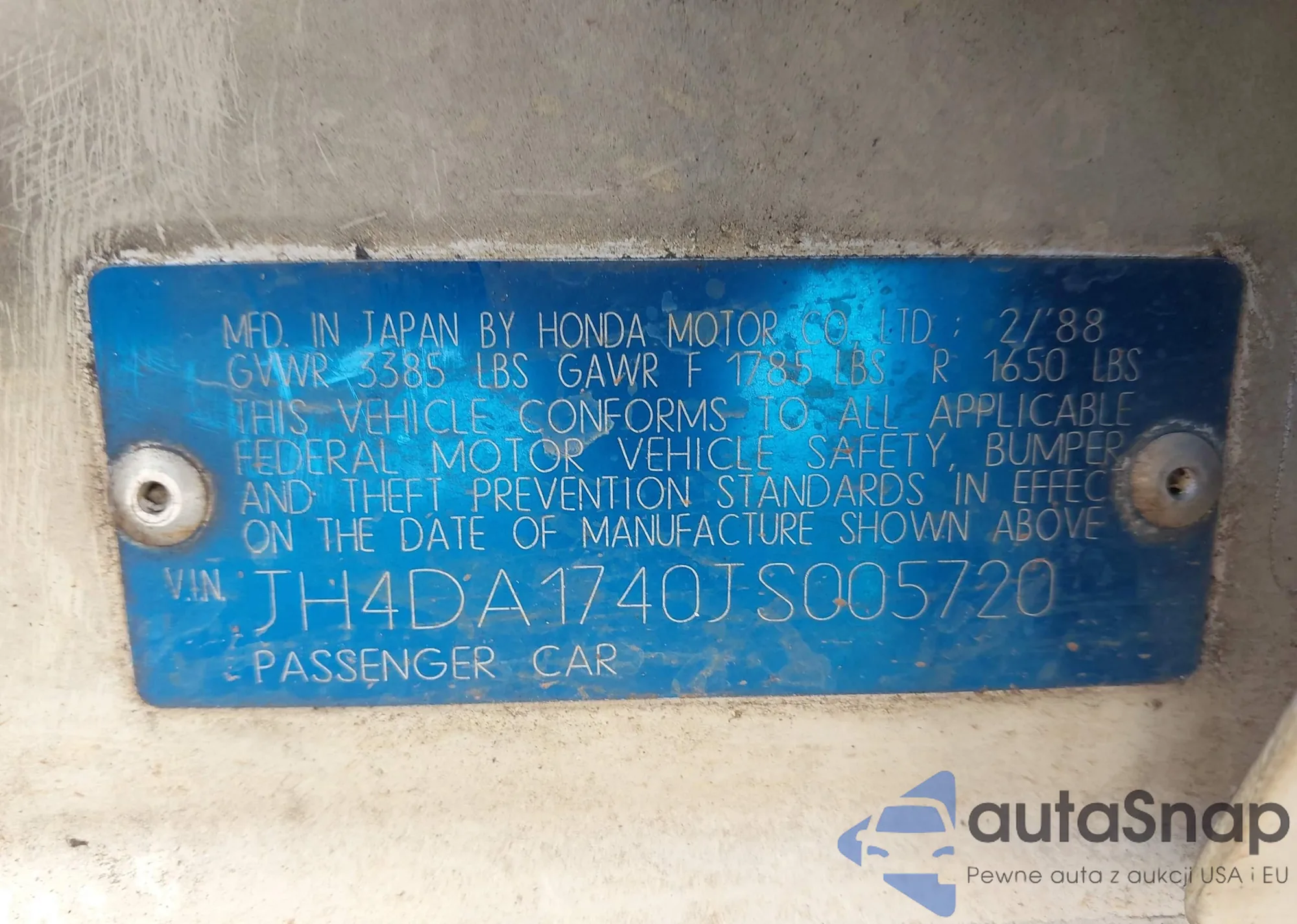 • VIN: JH4DA1740JS005720