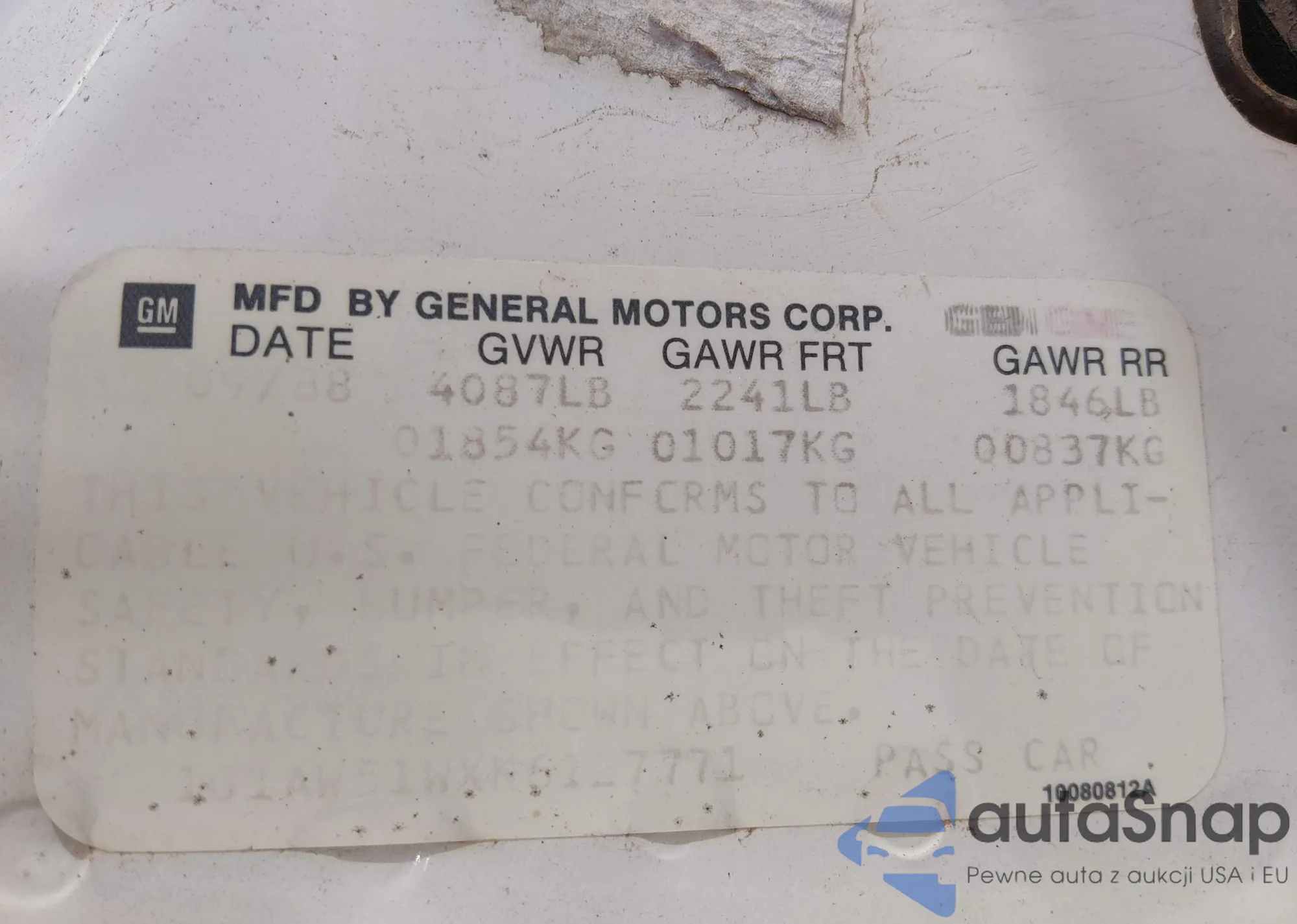 VIN: 1G1AW51WXK6127771