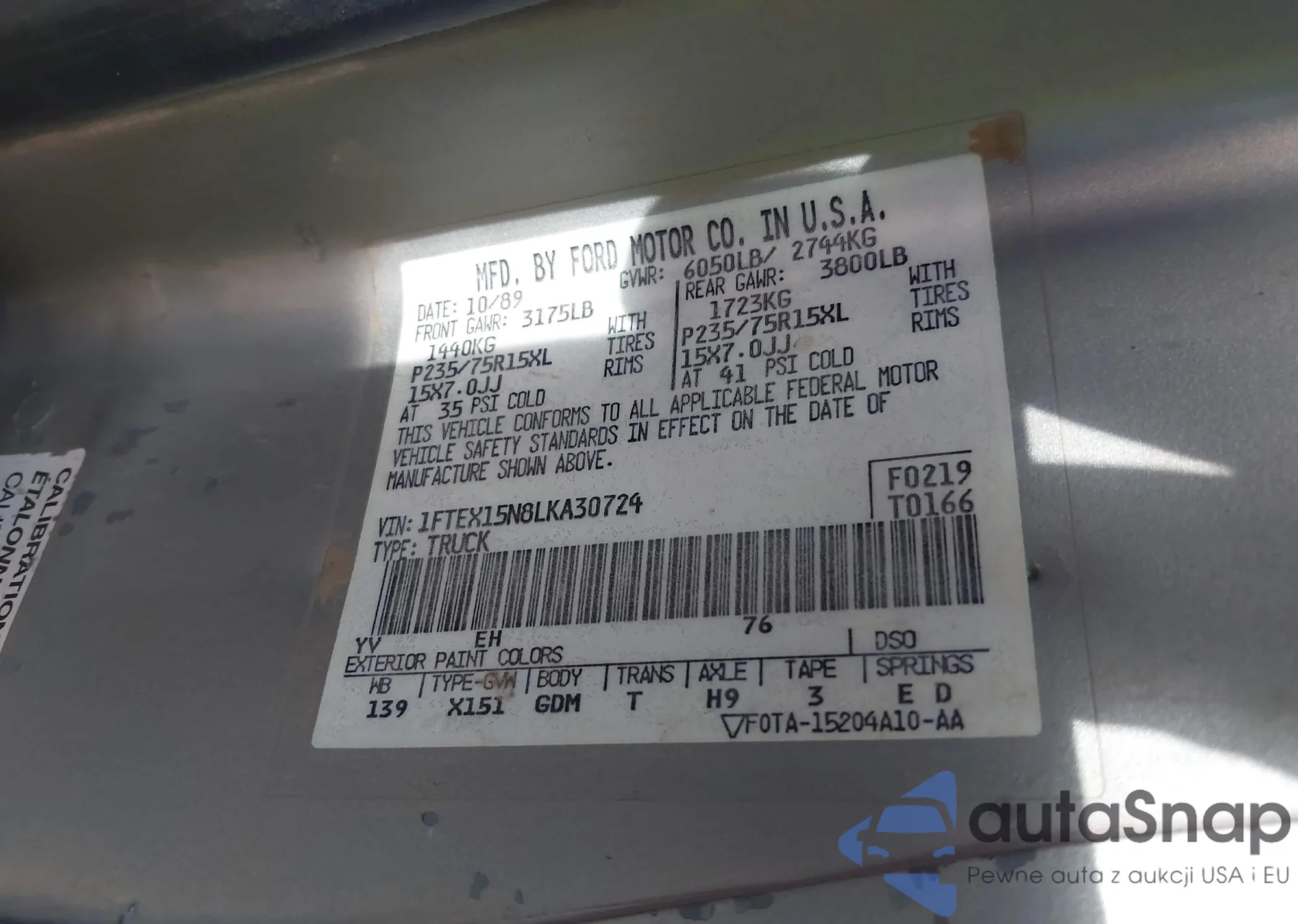 Ford F-150 1990 – Historia pojazdu (sprzedany na IAAI)