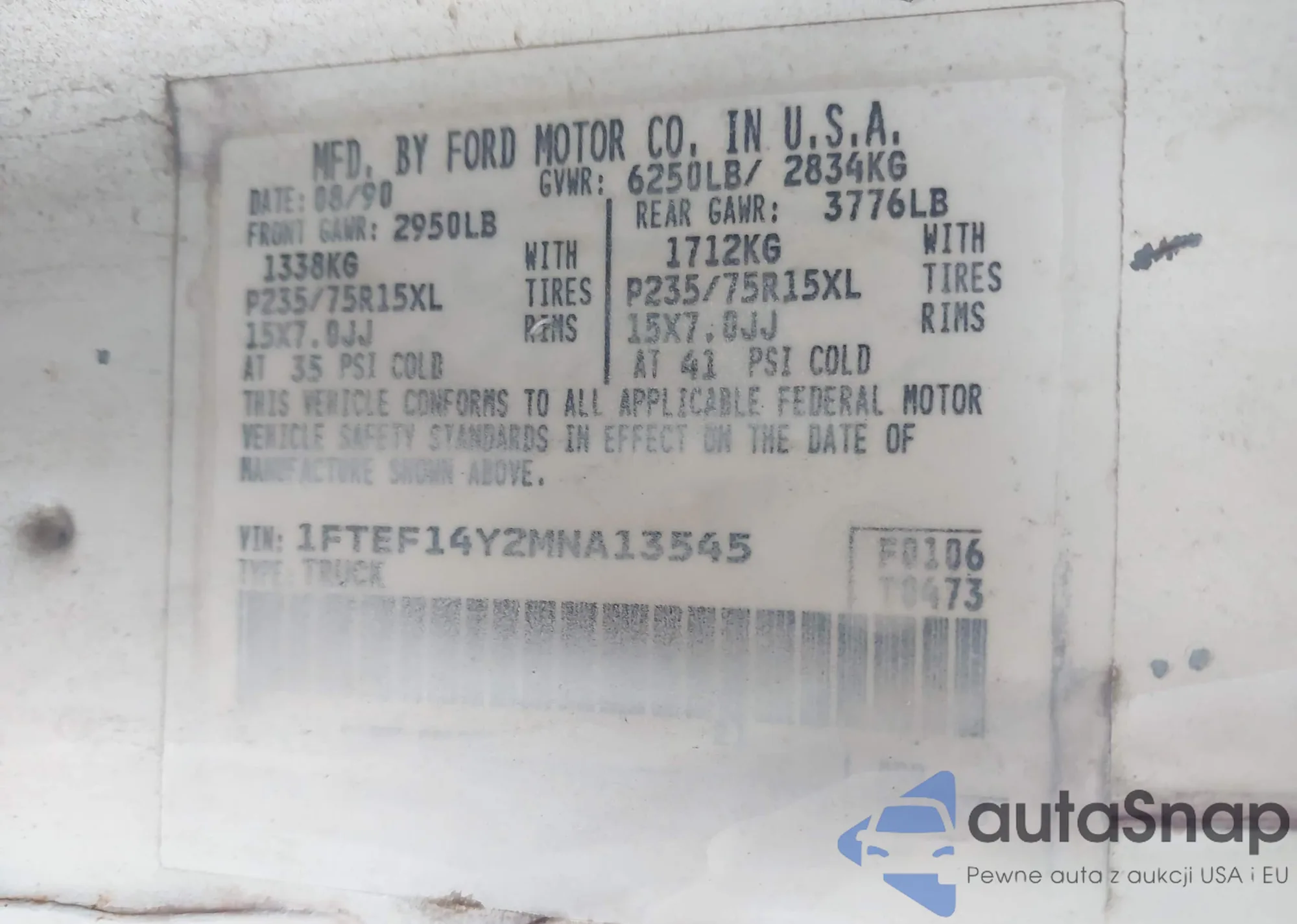 VIN: 1FTEF14Y2MNA13545