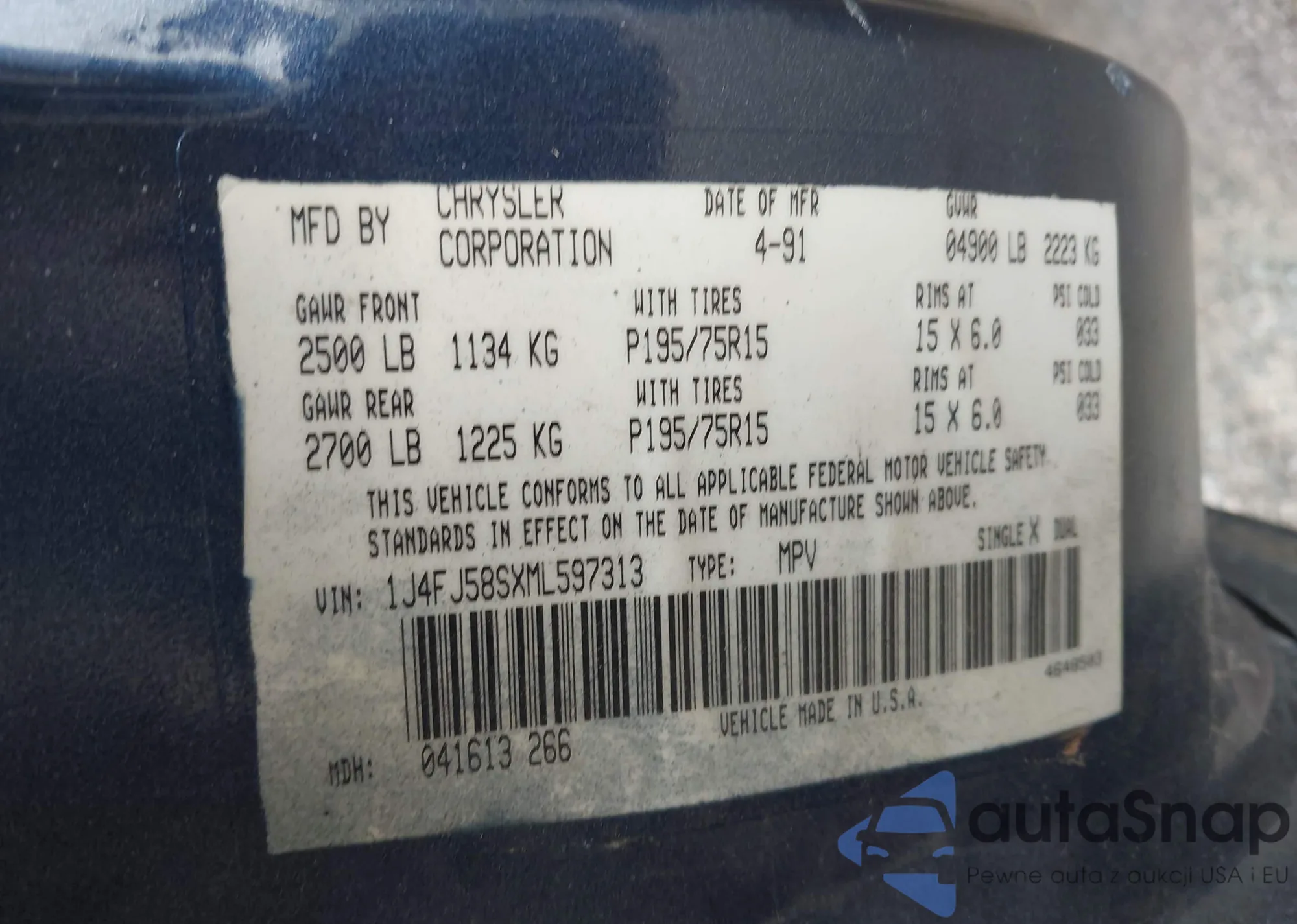 VIN: 1J4FJ58SXML597313