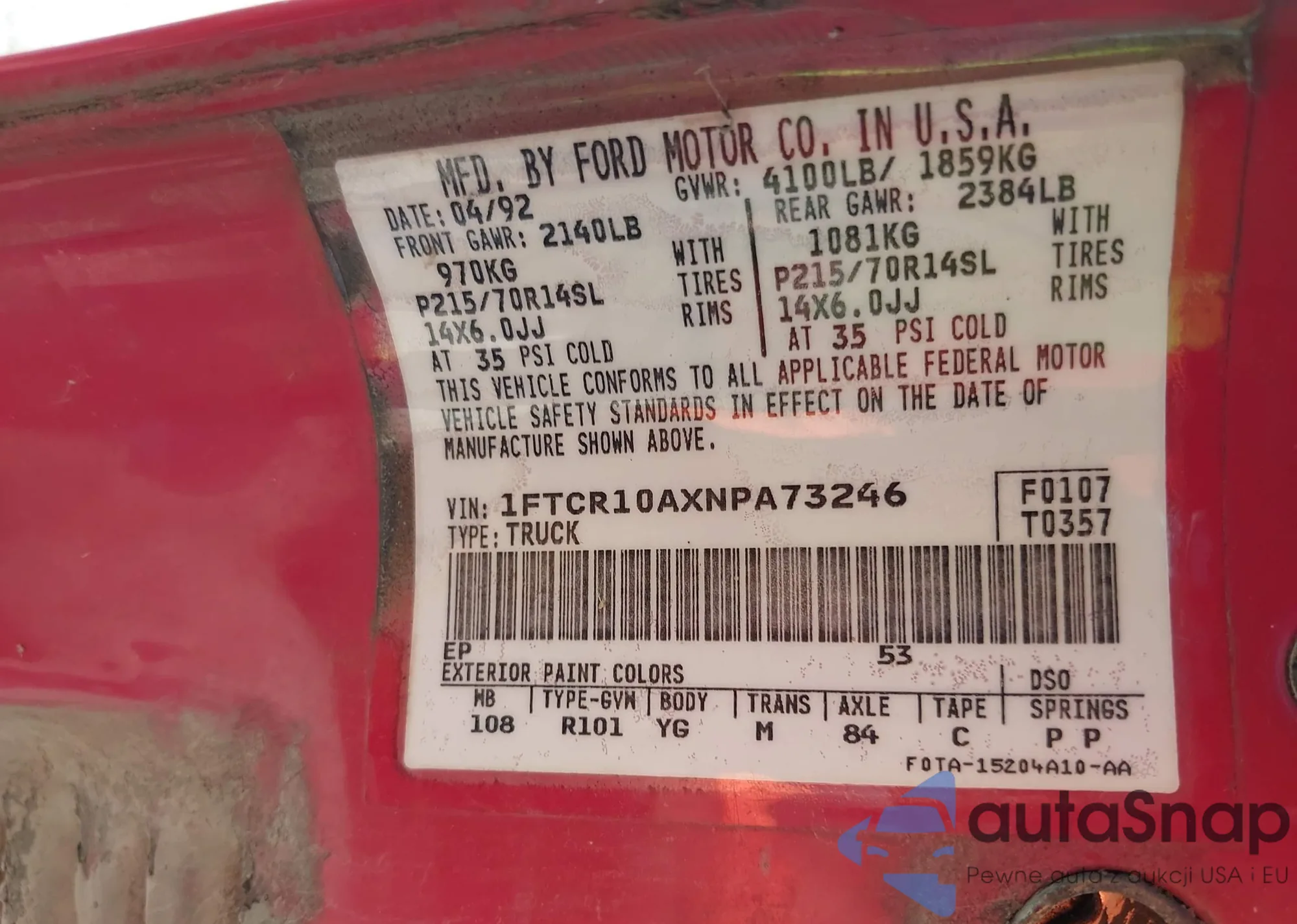 VIN: 1FTCR10AXNPA73246