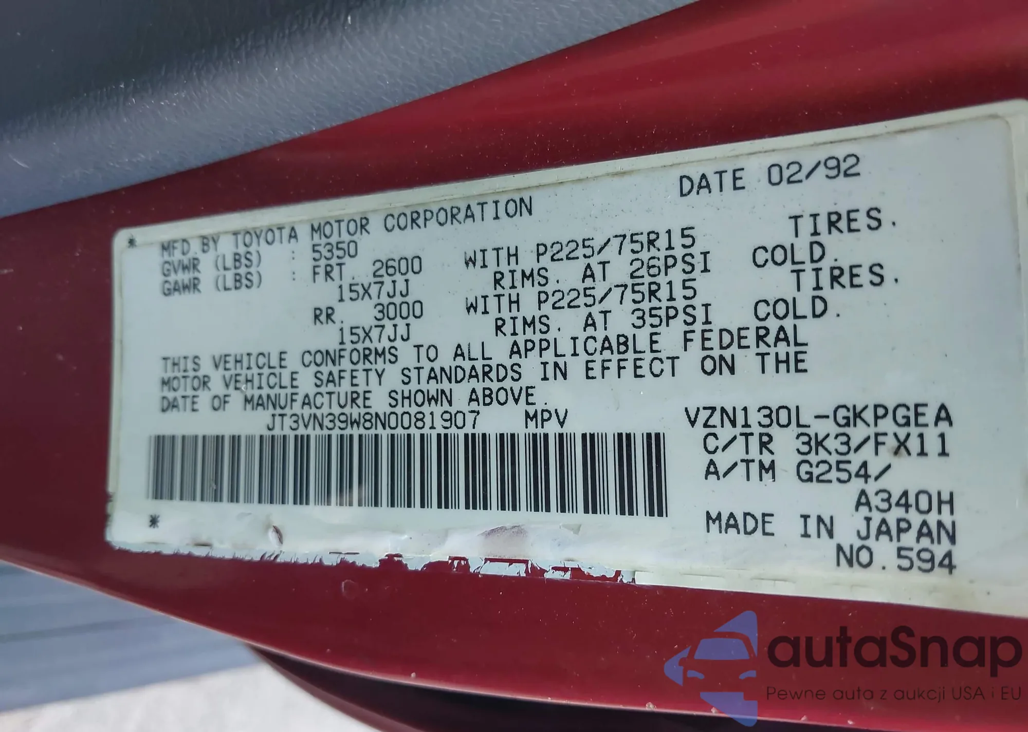 VIN: JT3VN39W8N0081907