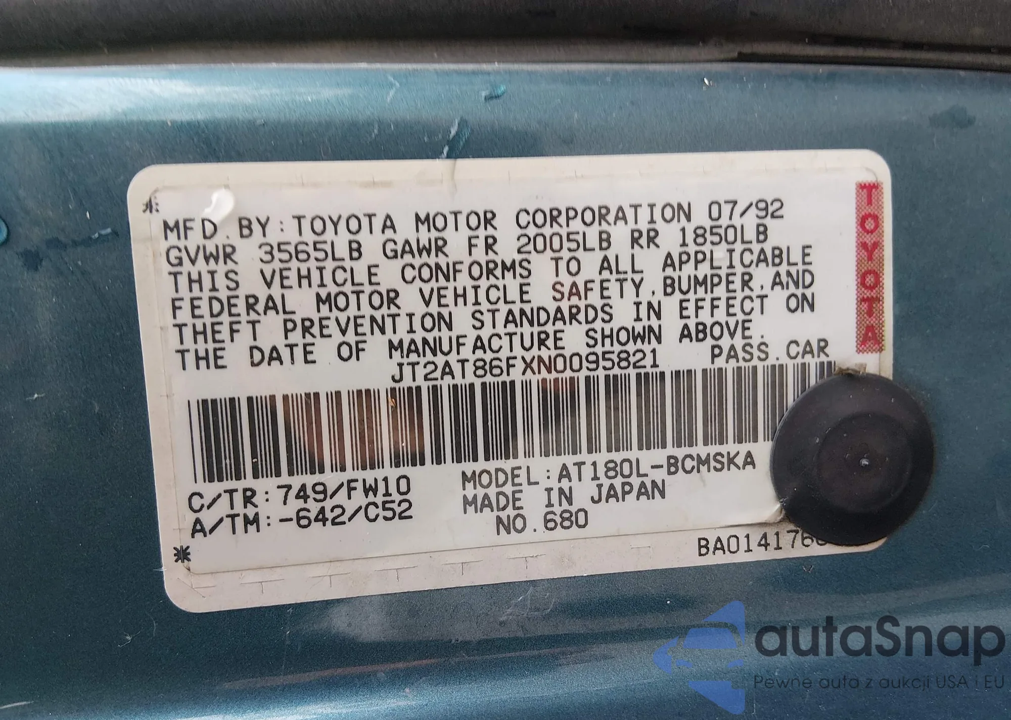 VIN: JT2AT86FXN0095821