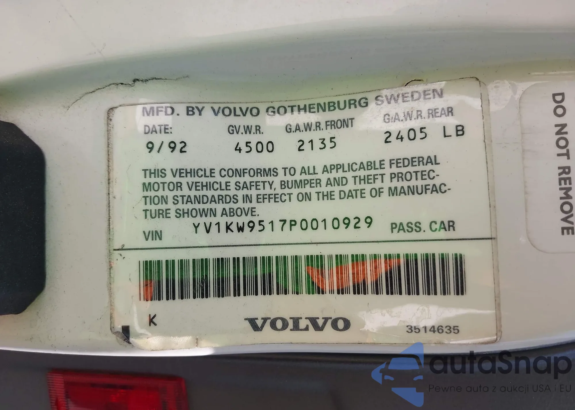 VIN: YV1KW9517P0010929