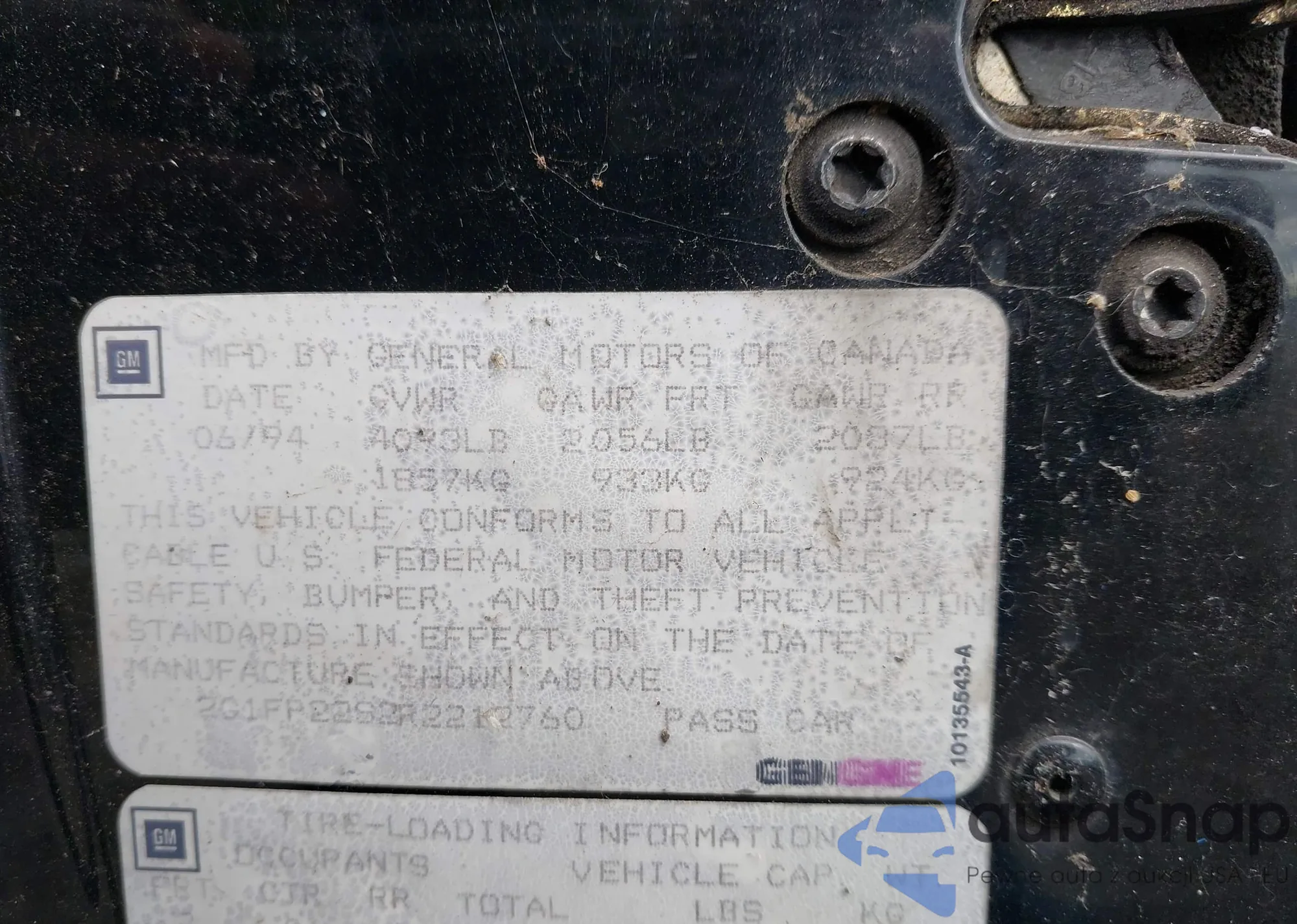 VIN: 2G1FP22S2R2212760