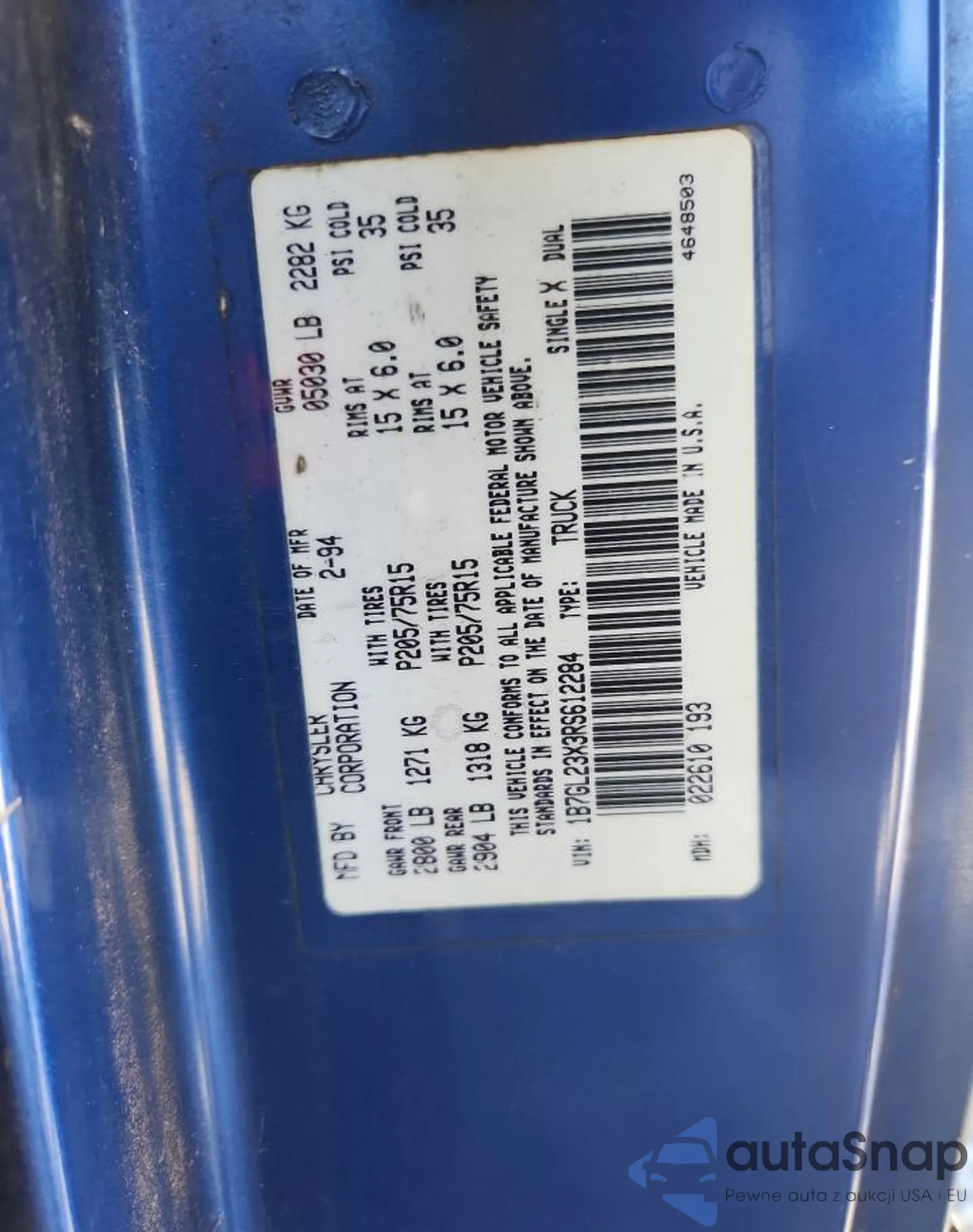 VIN: 1B7GL23X3RS612284