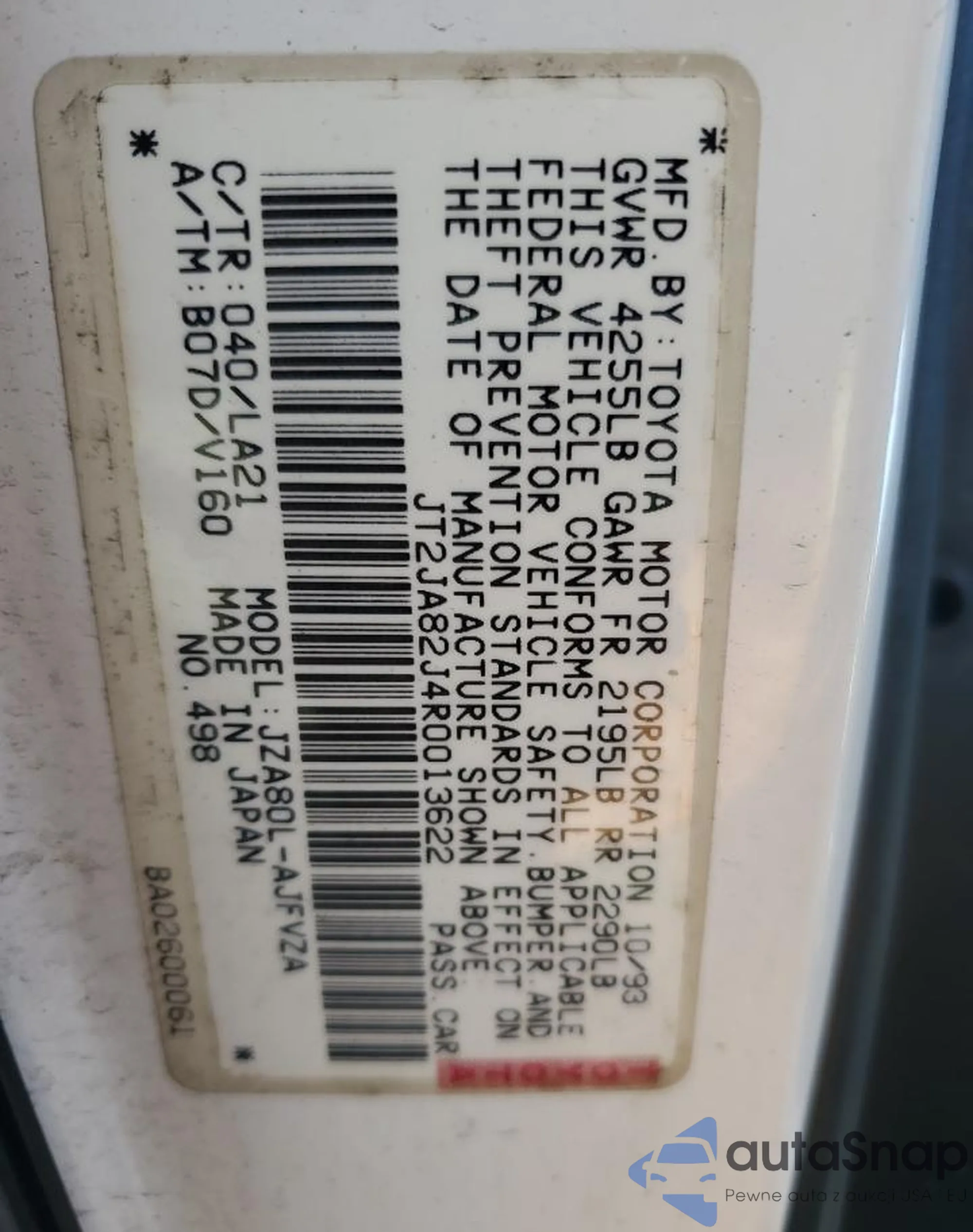 VIN: JT2JA82J4R0013622