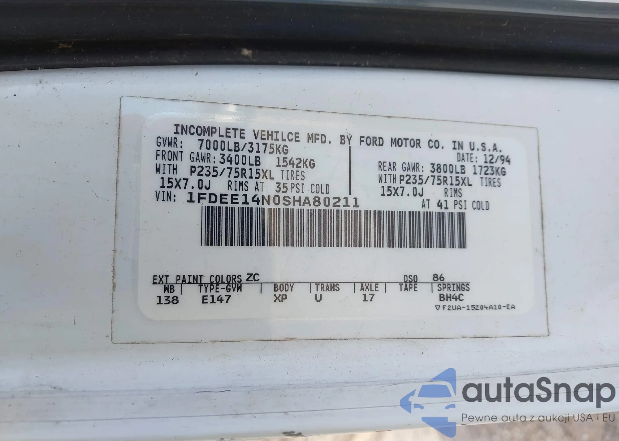 • VIN: 1FDEE14N0SHA80211
