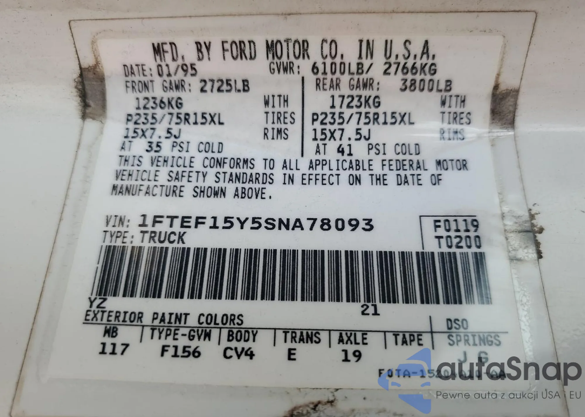 VIN: 1FTEF15Y5SNA78093
