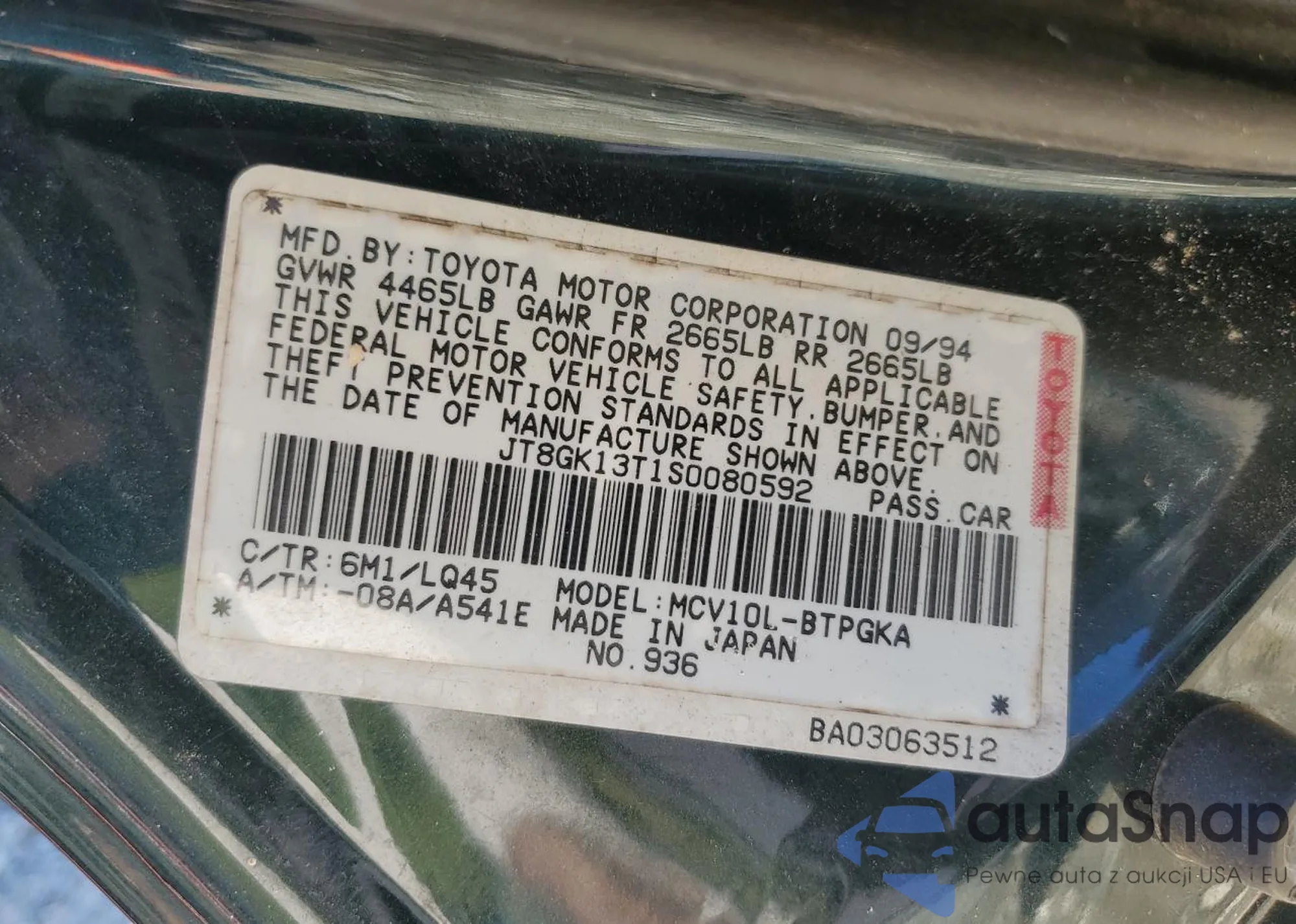 VIN: JT8GK13T1S0080592