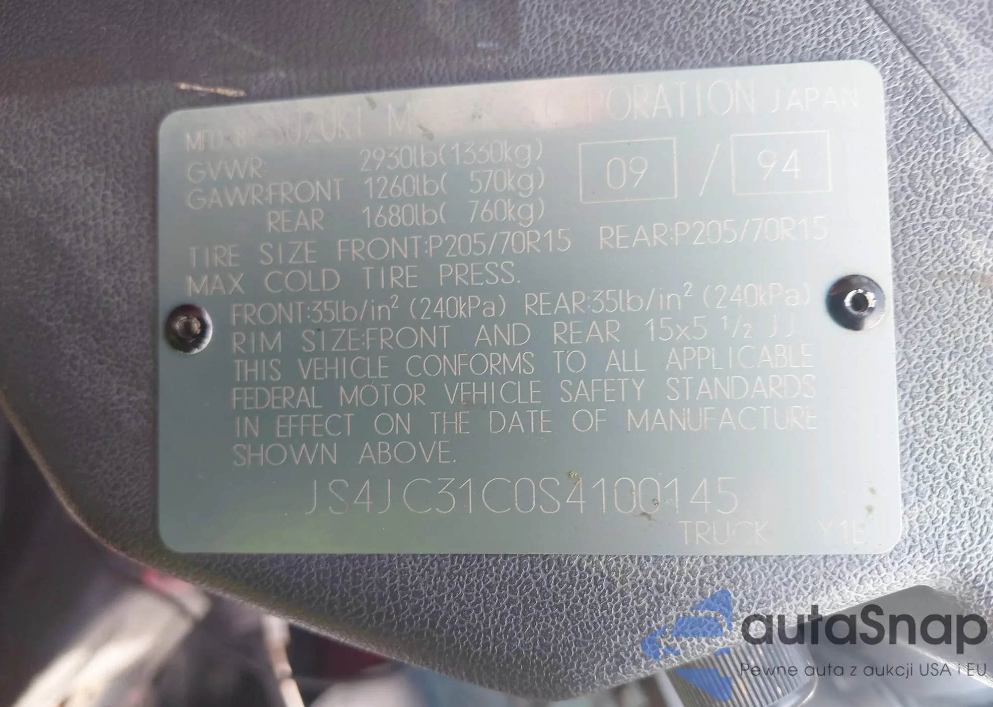 VIN: JS4JC31C0S4100145