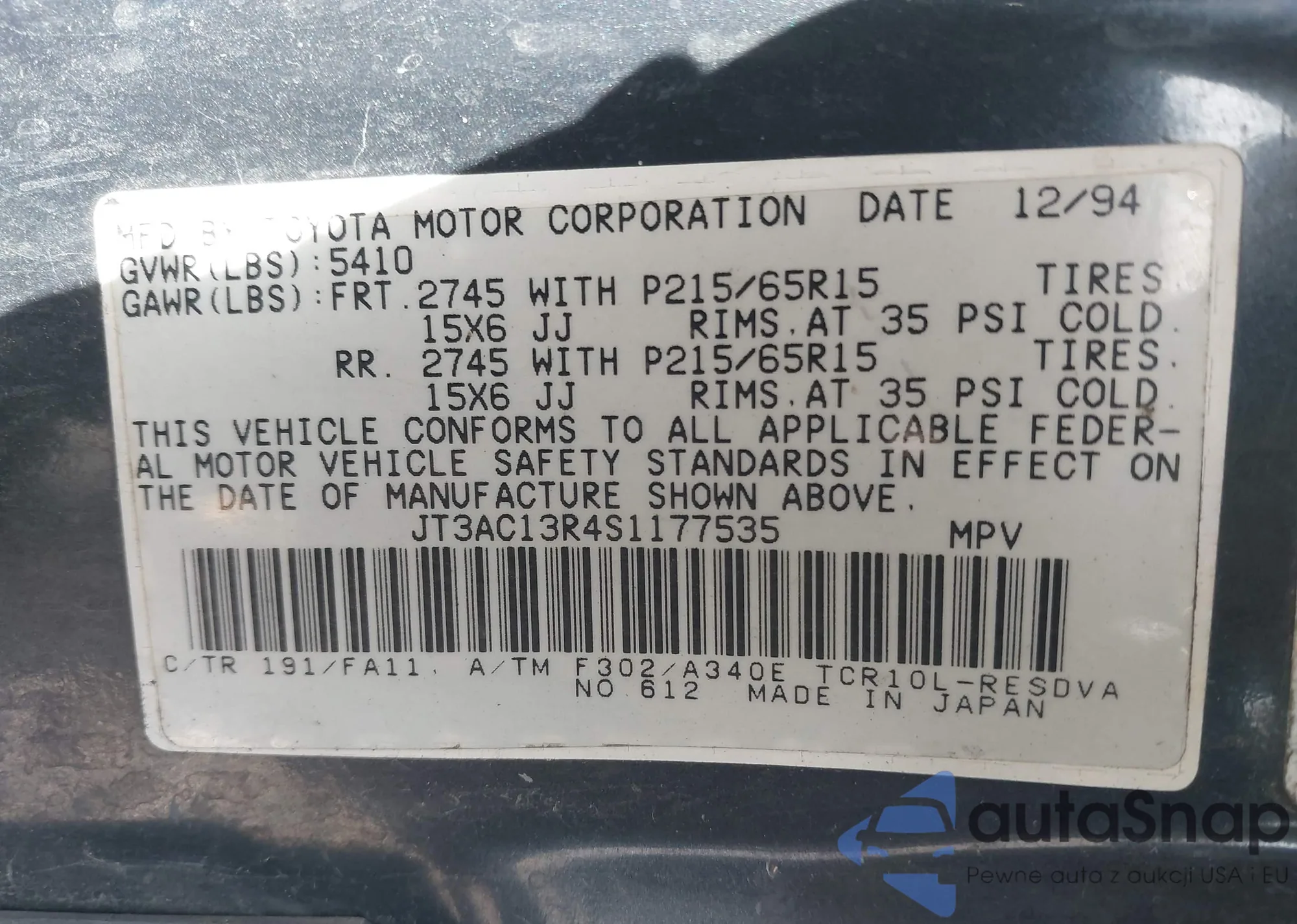 VIN: JT3AC13R4S1177535