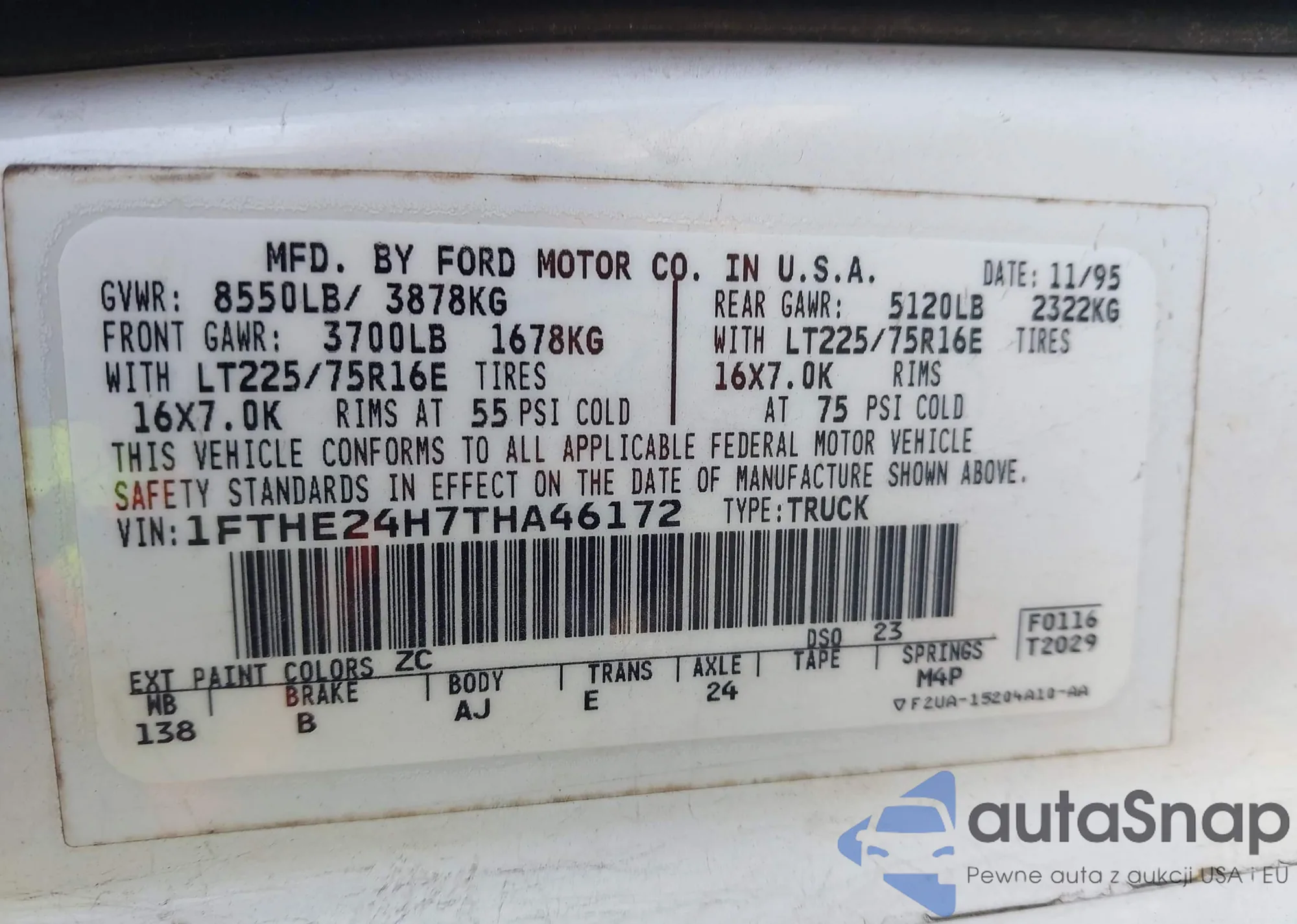 • VIN: 1FTHE24H7THA46172