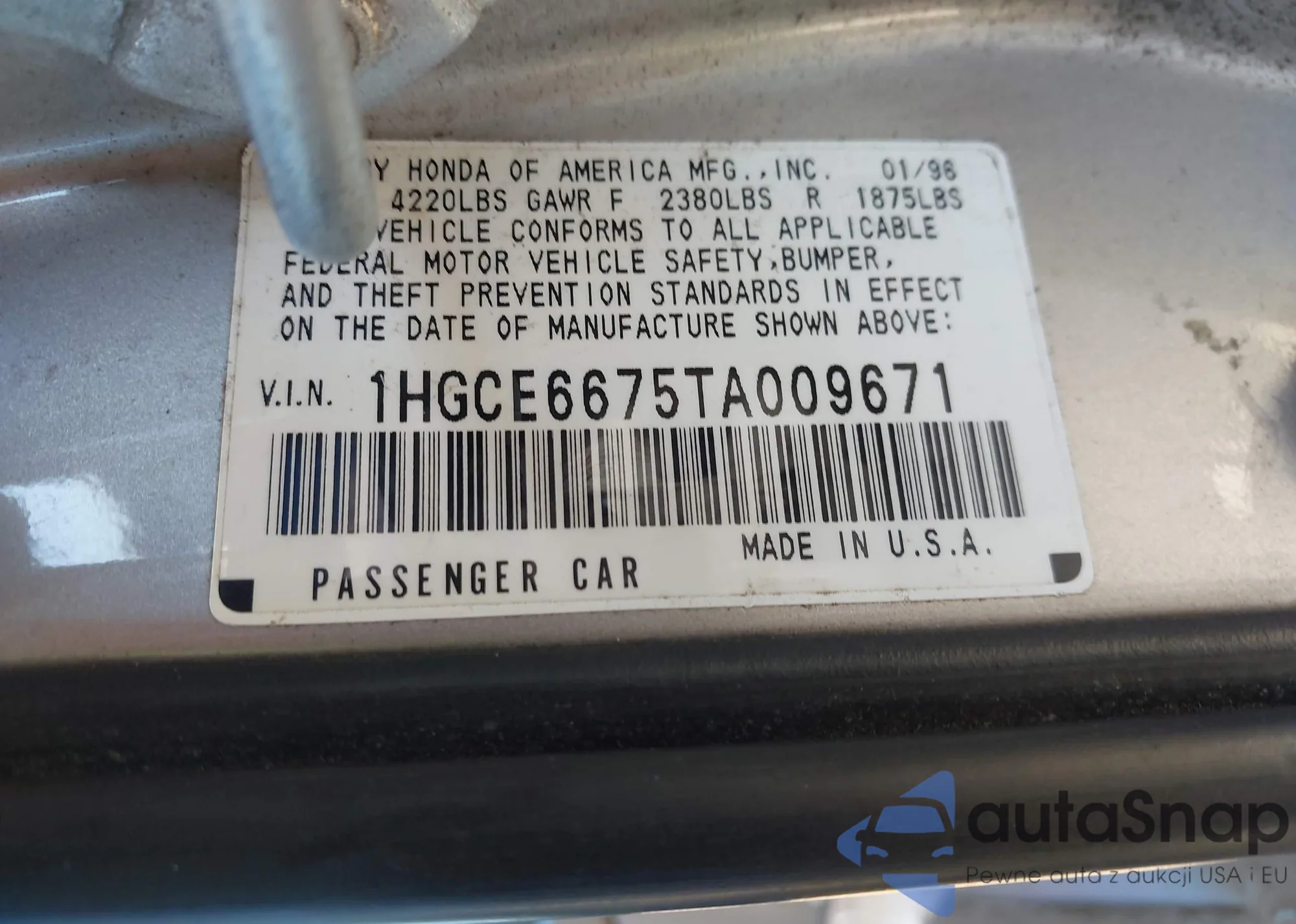 VIN: 1HGCE6675TA009671