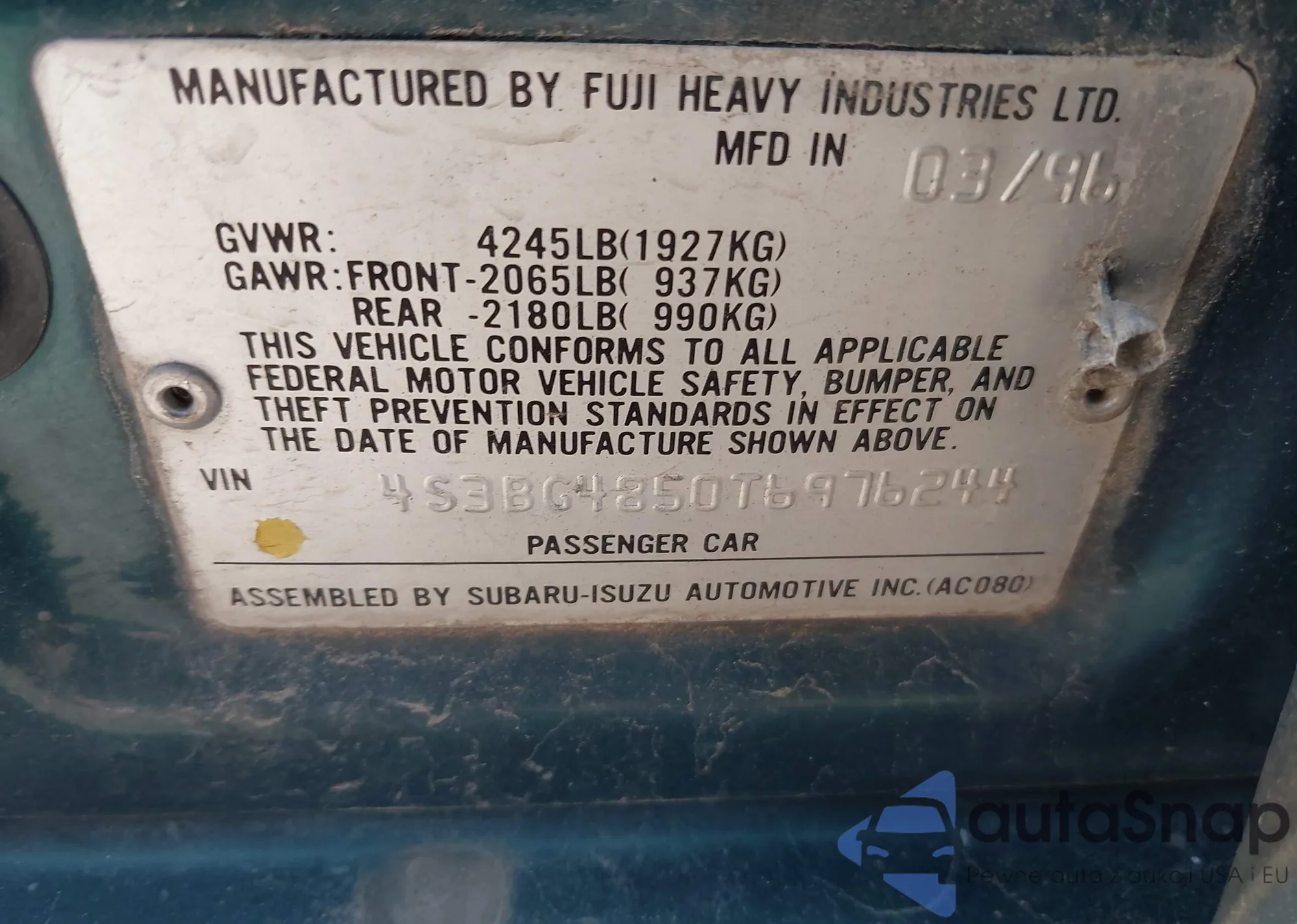Samochód Subaru Legacy 1996 (VIN 4S3BG4850T6976244) sprzedaje go niezweryfikowany sprzedawca. Zalecamy raport Carfax i potwierdzenie możliwości rejestracji pojazdu przed zakupem.