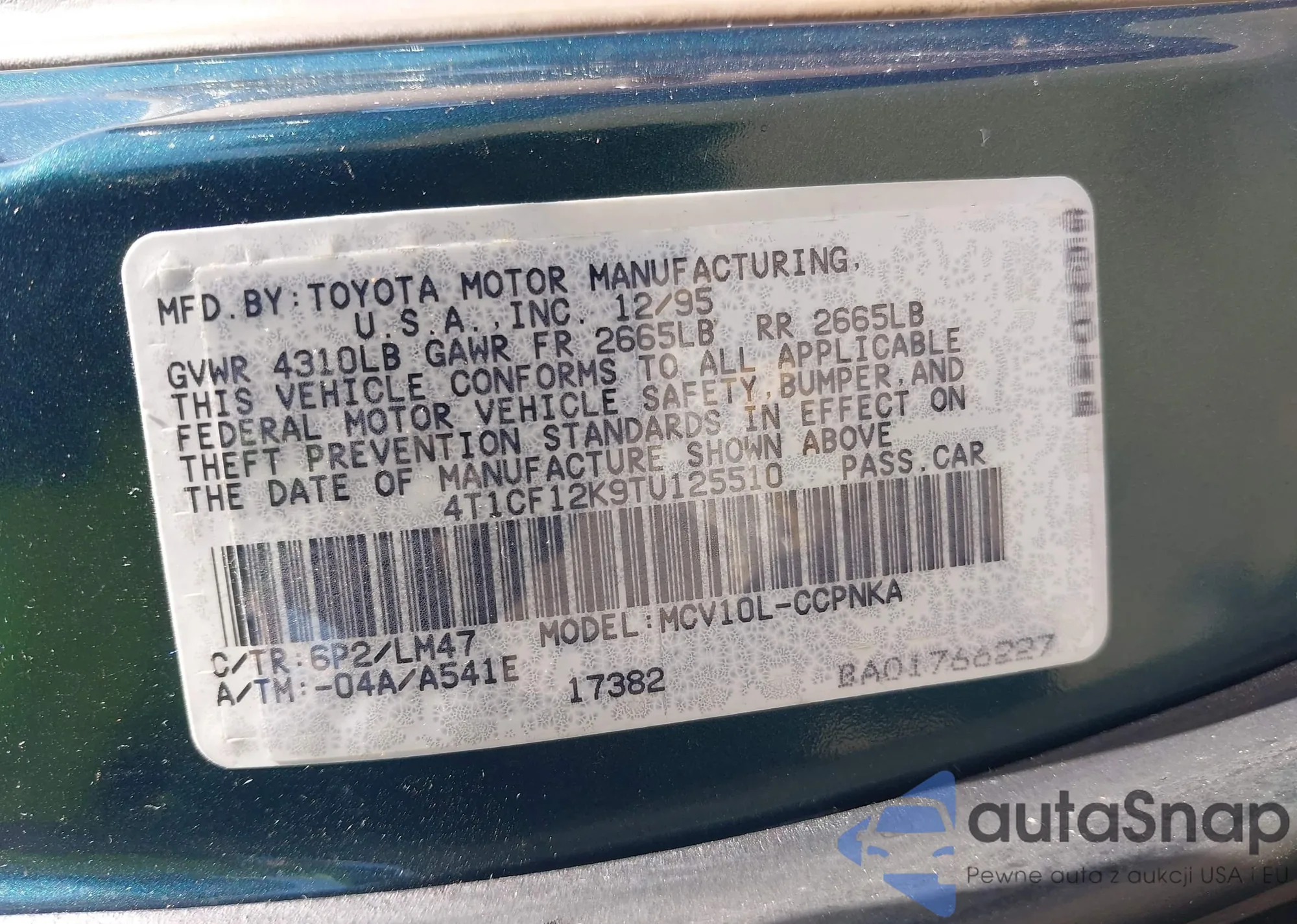 VIN: 4T1CF12K9TU125510