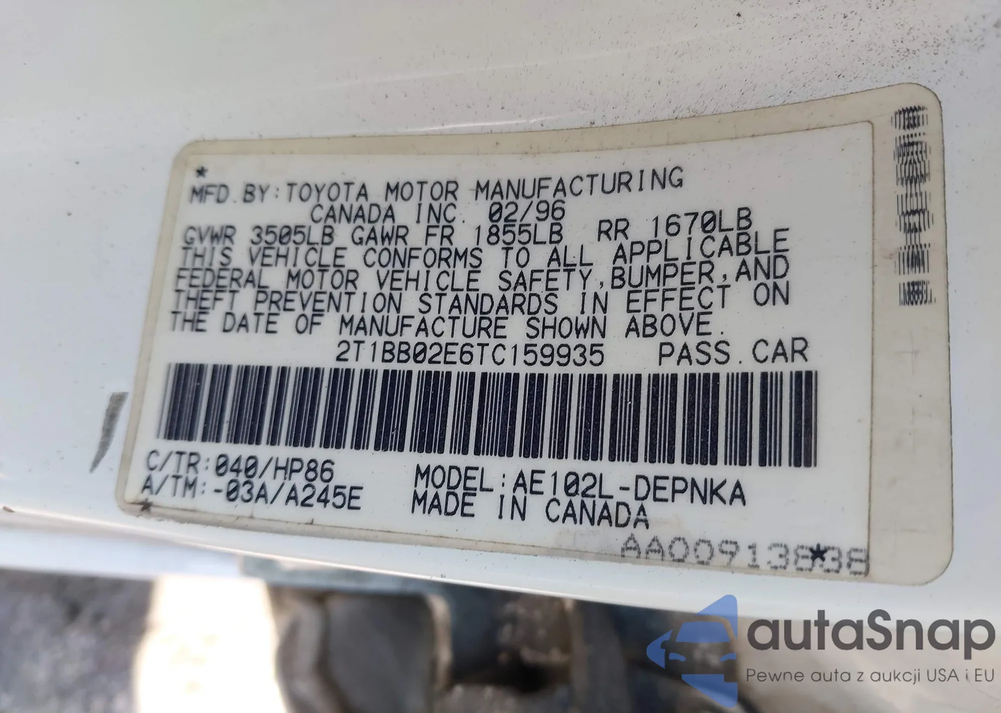 VIN: 2T1BB02E6TC159935
