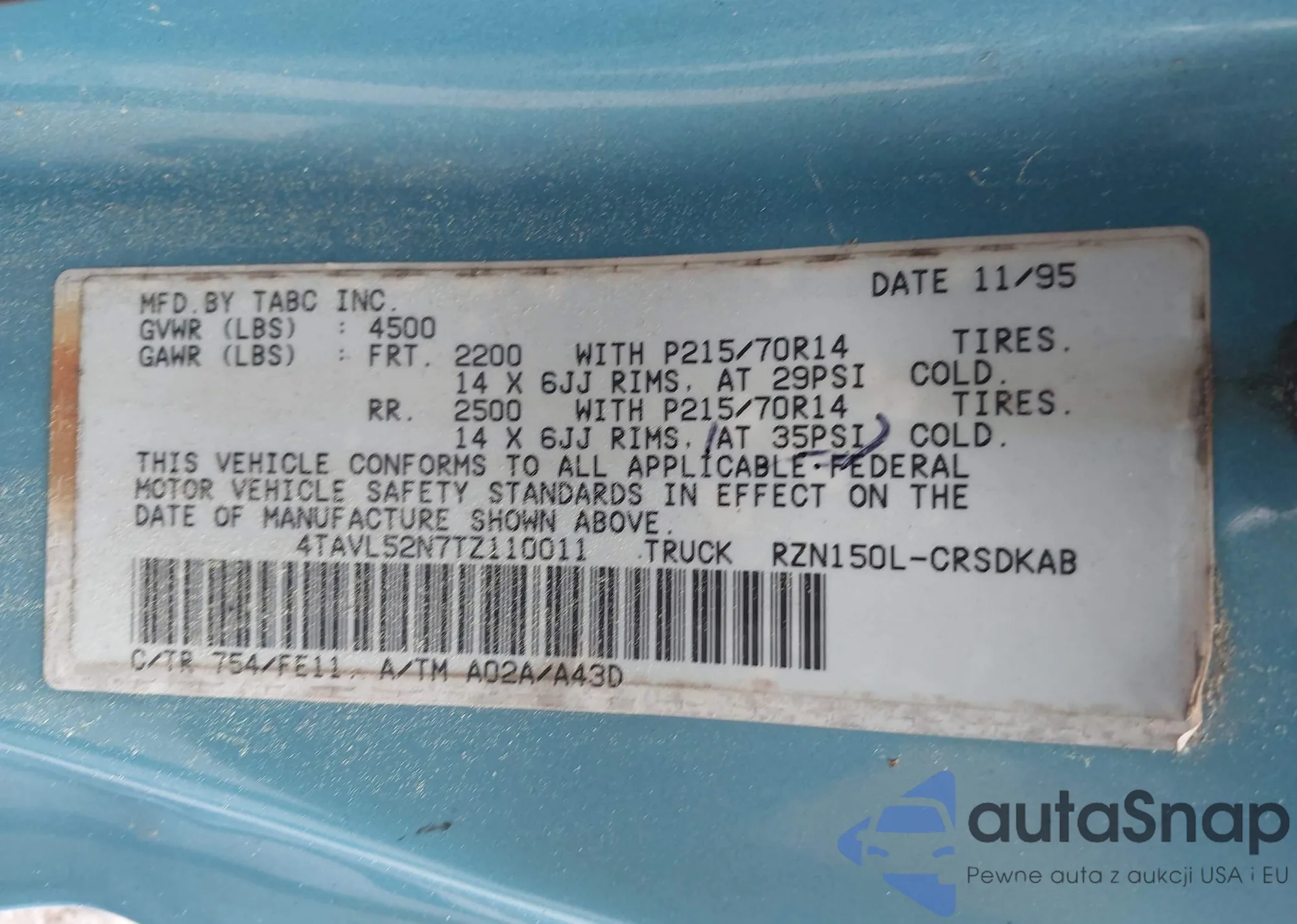 VIN: 4TAVL52N7TZ110011