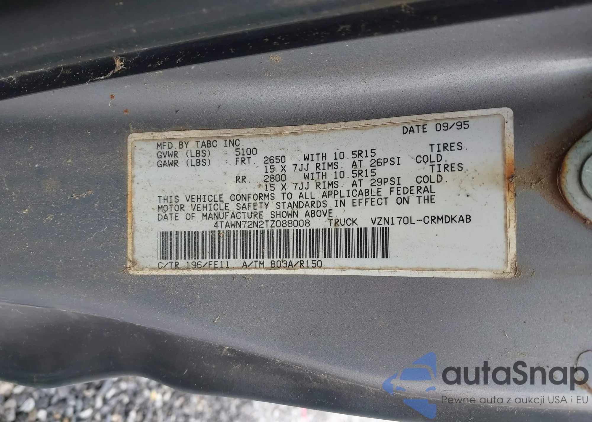VIN: 4TAWN72N2TZ088008