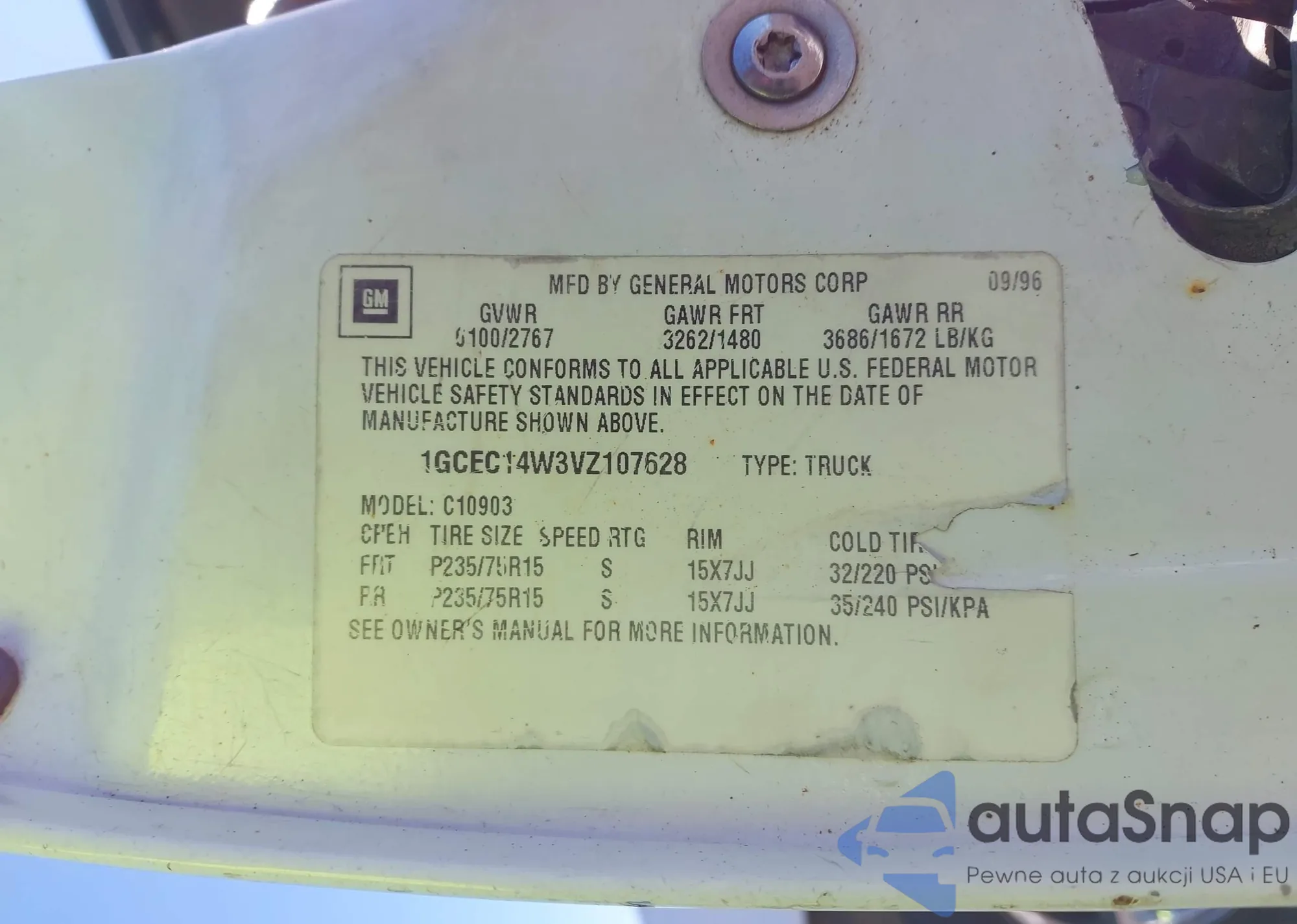 Samochód Chevrolet C/K 1997 (VIN 1GCEC14W3VZ107628) nie był wcześniej licytowany. Dokumenty są czyste, przebieg odpowiada lub jest niższy niż średnia rynku. Sprzedaje go firma ubezpieczeniowa – polecamy zakup. Dostawa do portu zajmie ok. 6–8 tygodni.