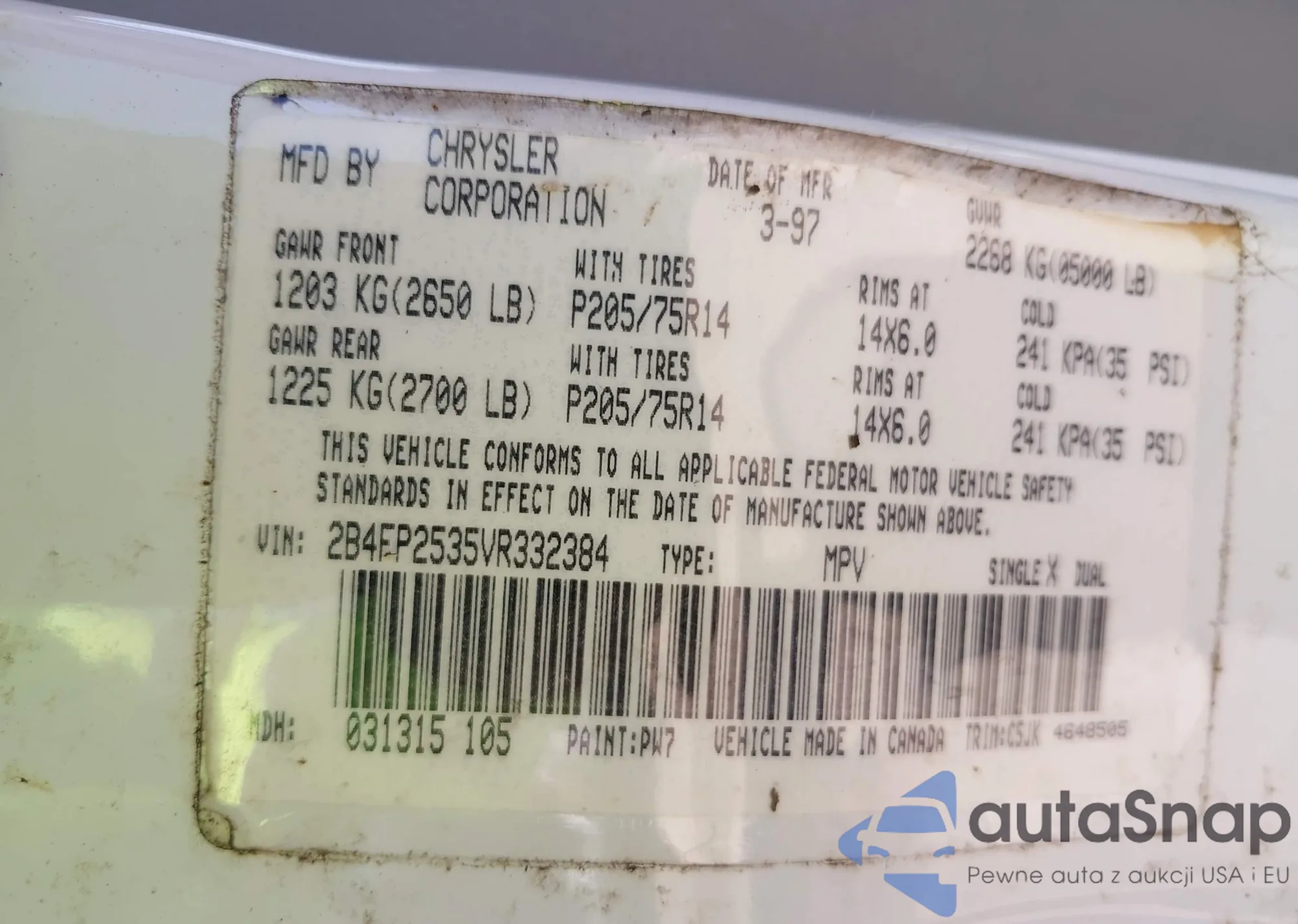 VIN: 2B4FP2535VR332384
