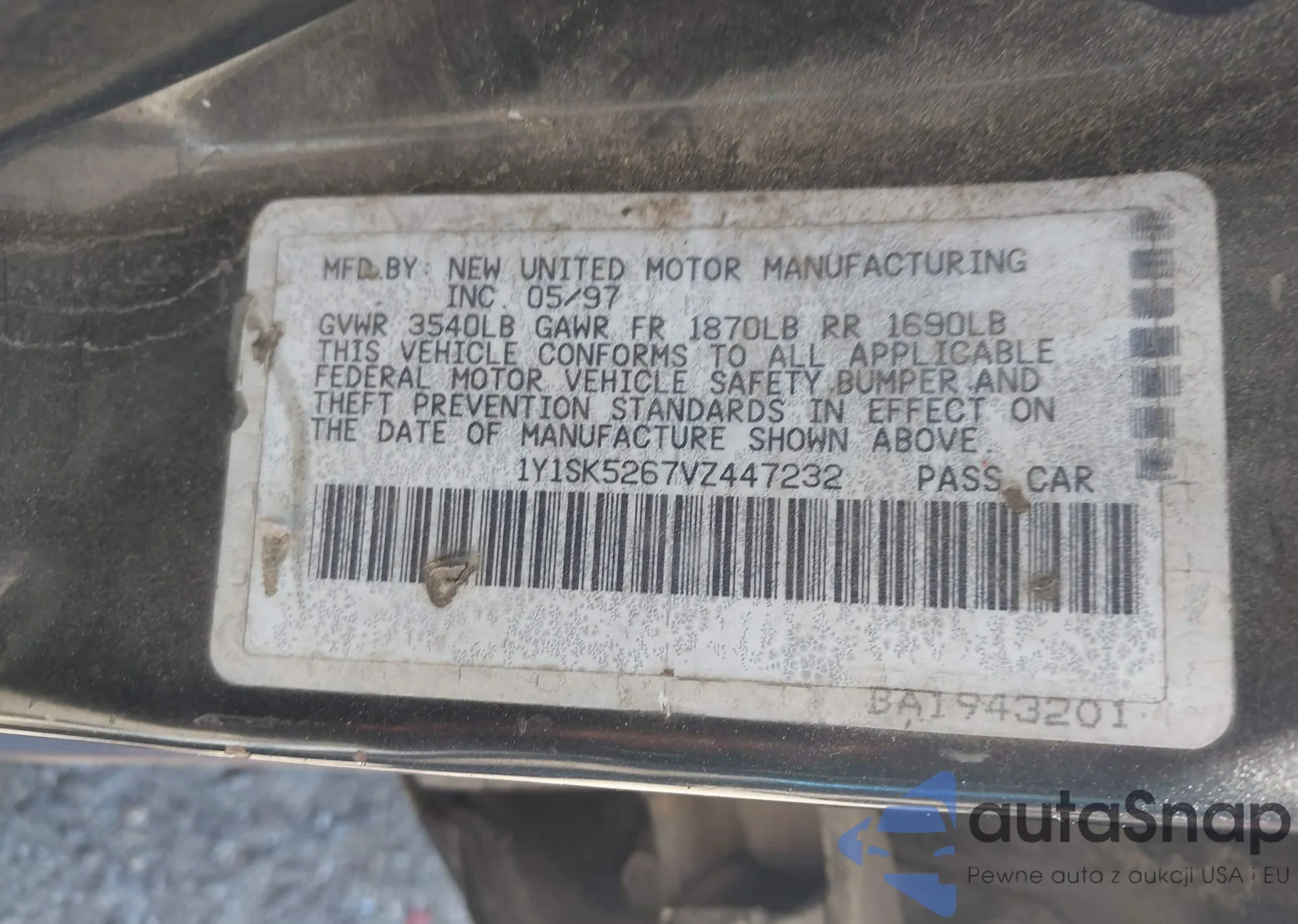 VIN: 1Y1SK5267VZ447232