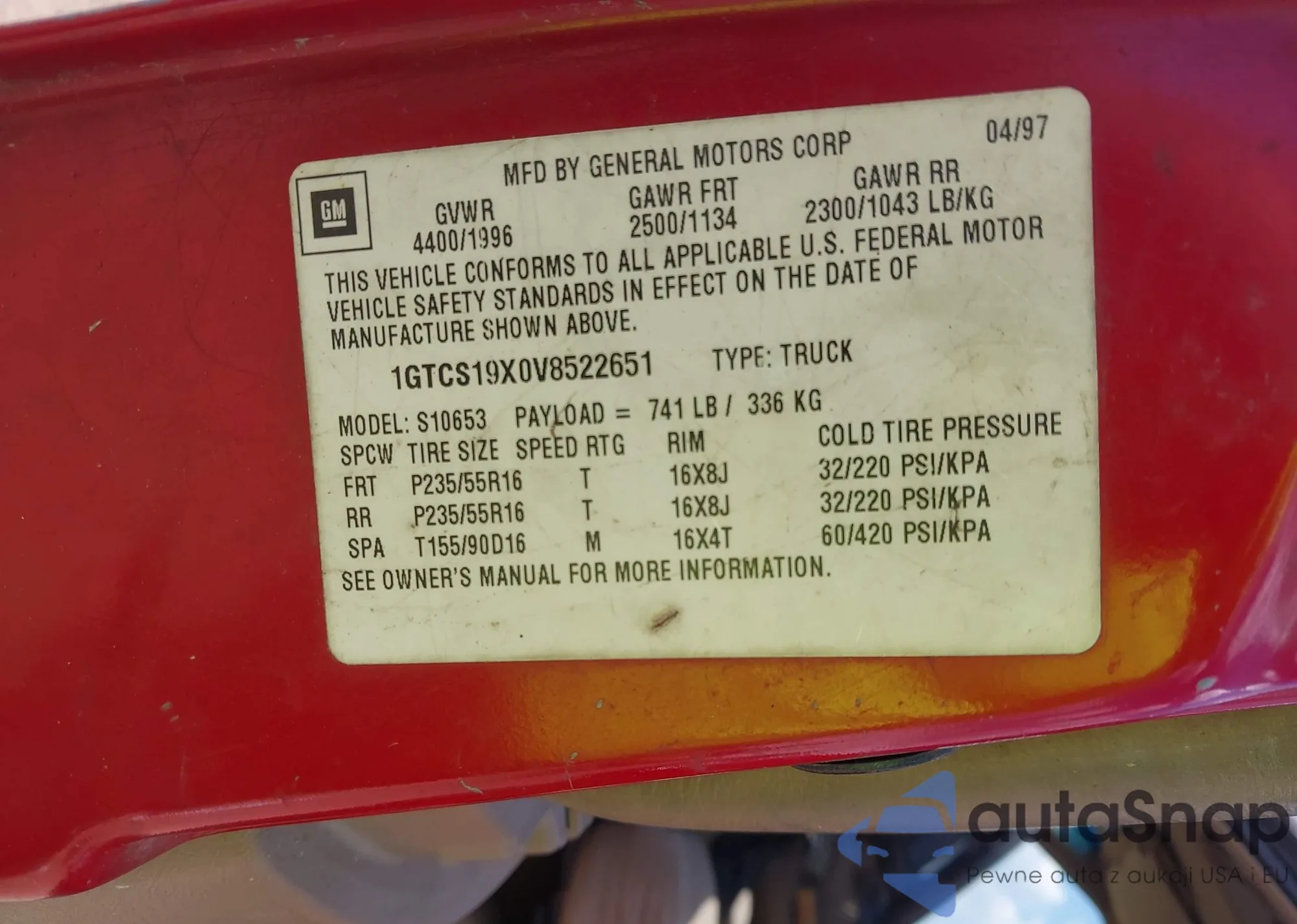 VIN: 1GTCS19X0V8522651