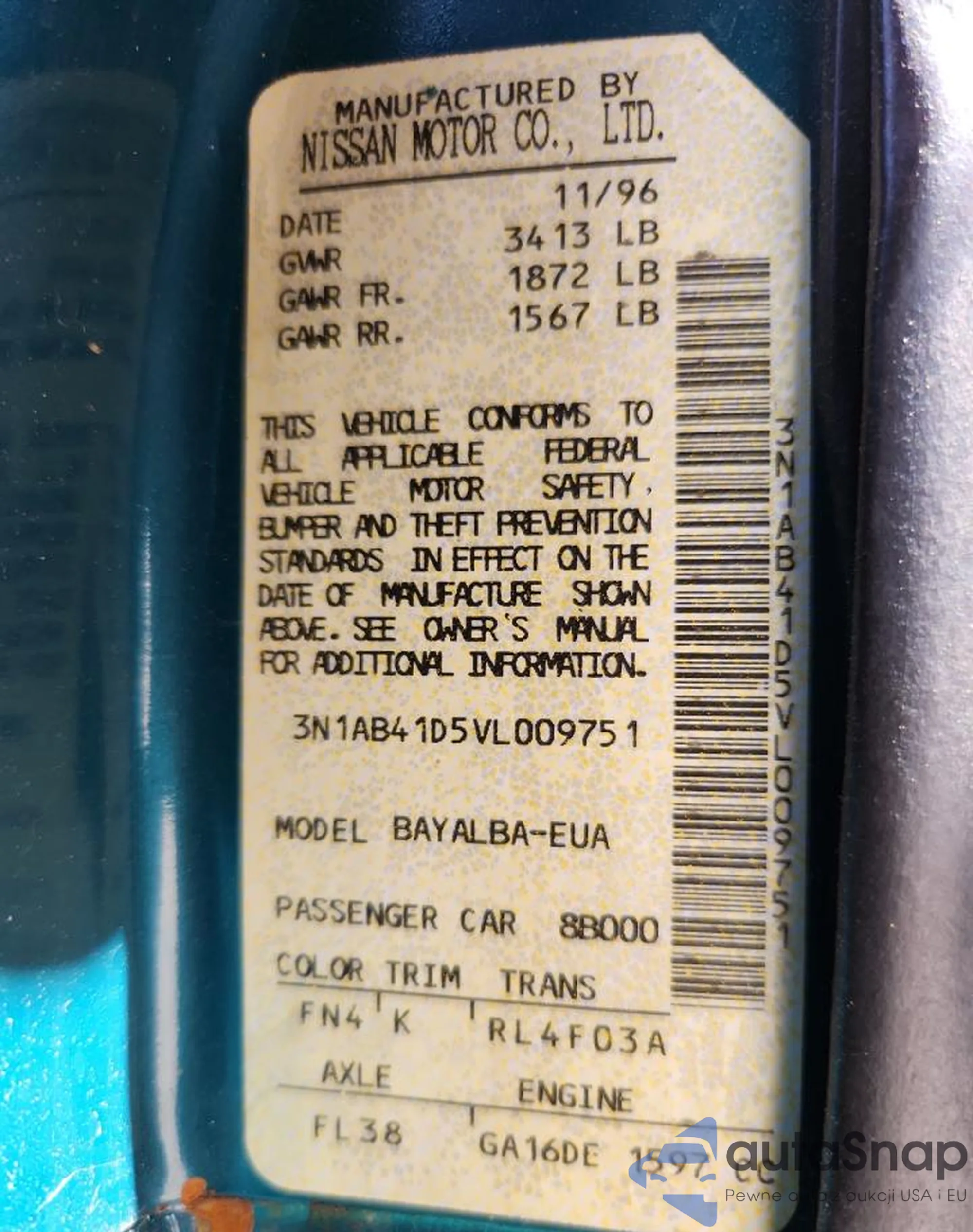VIN: 3N1AB41D5VL009751