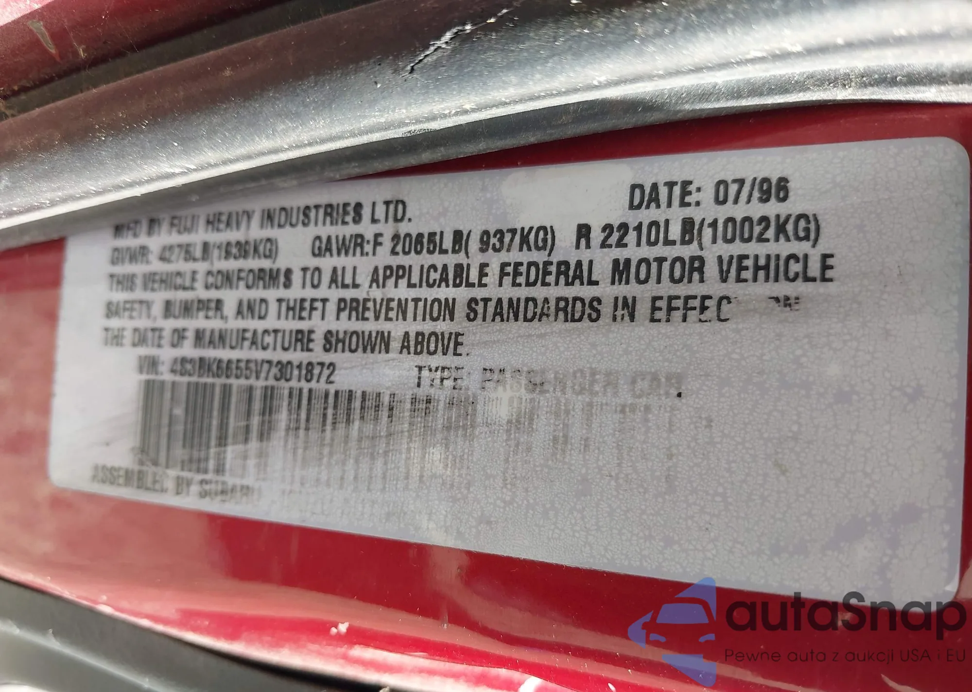 VIN: 4S3BK6655V7301872