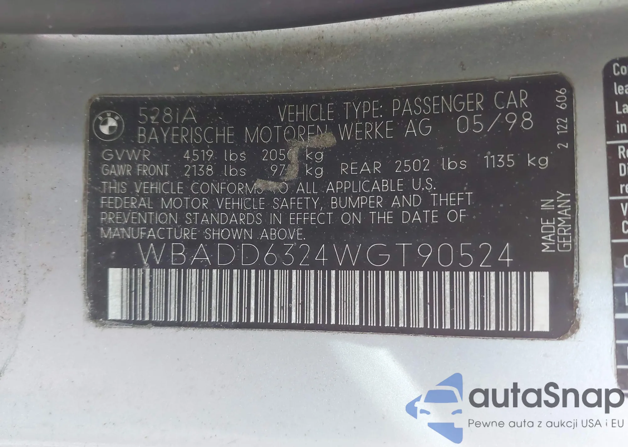 Samochód BMW 5er 1998 (VIN WBADD6324WGT90524) był już licytowany 0 razy lub sprzedaje go niezweryfikowany sprzedawca. Zalecamy raport Carfax i potwierdzenie możliwości rejestracji pojazdu przed zakupem.