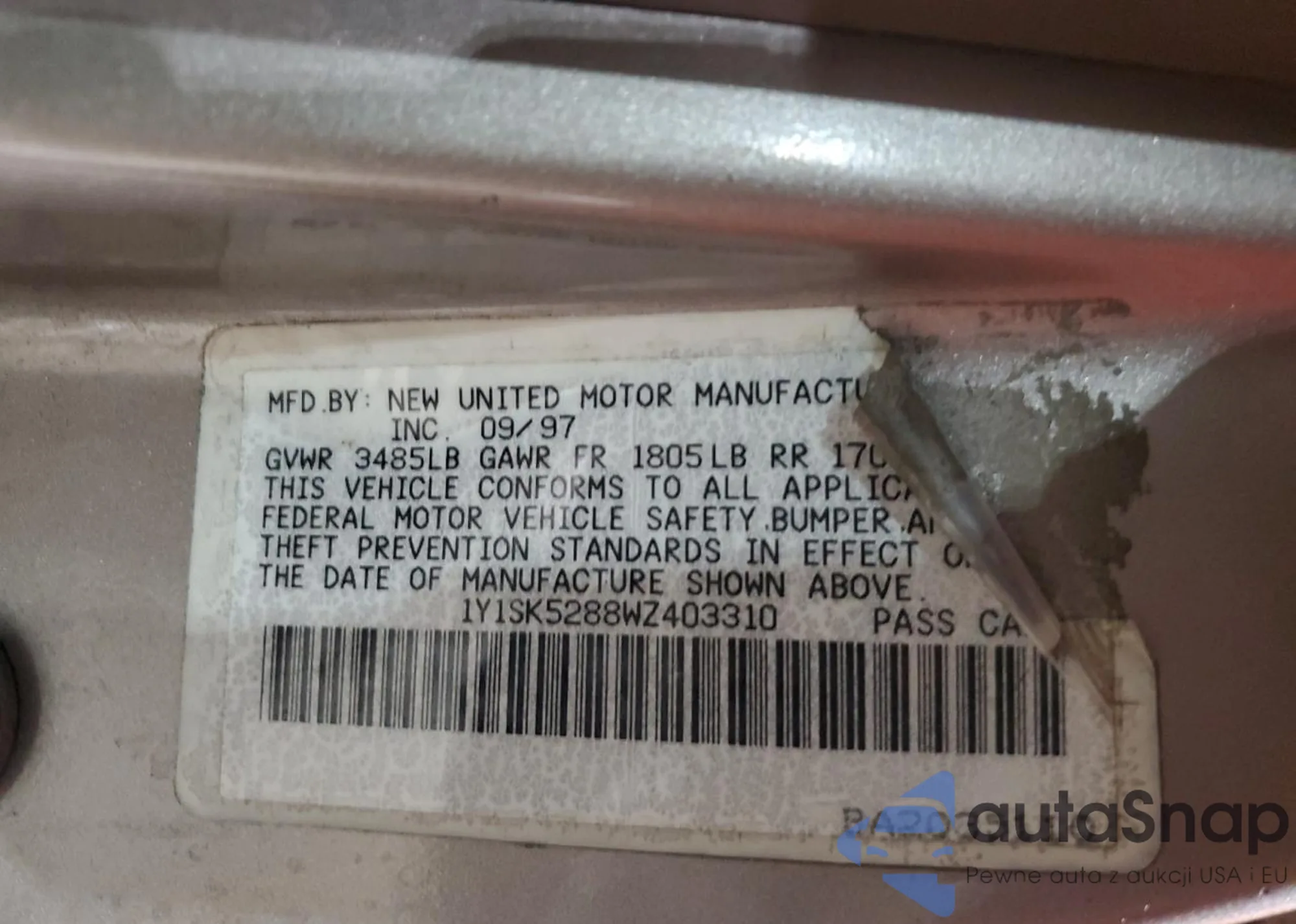 VIN: 1Y1SK5288WZ403310