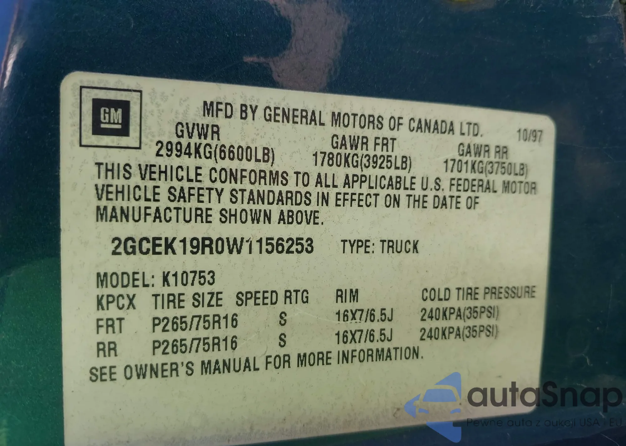VIN: 2GCEK19R0W1156253