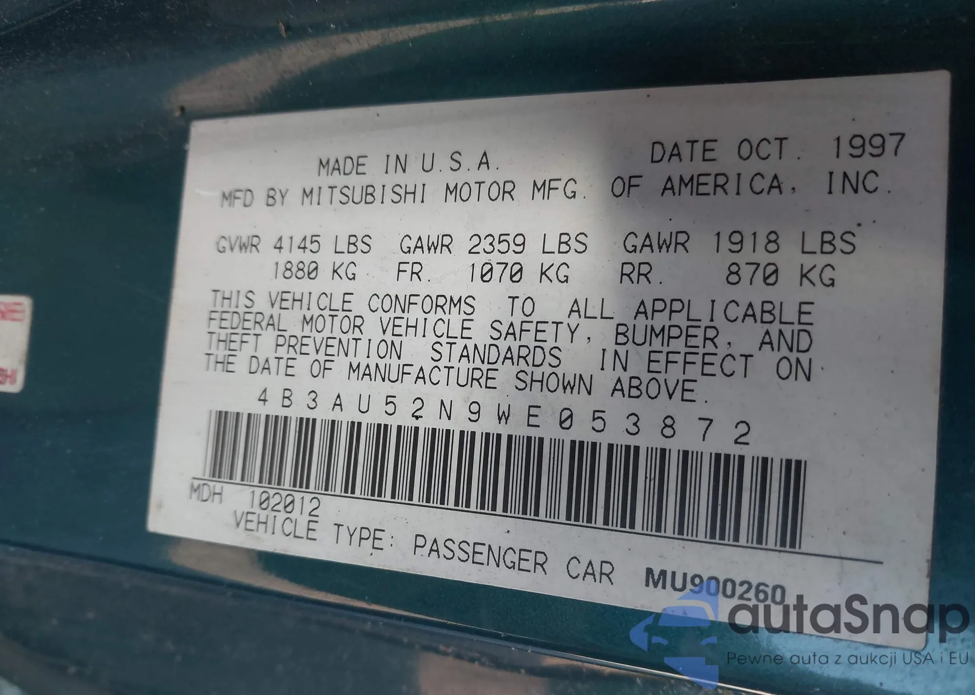 VIN: 4B3AU52N9WEO53872