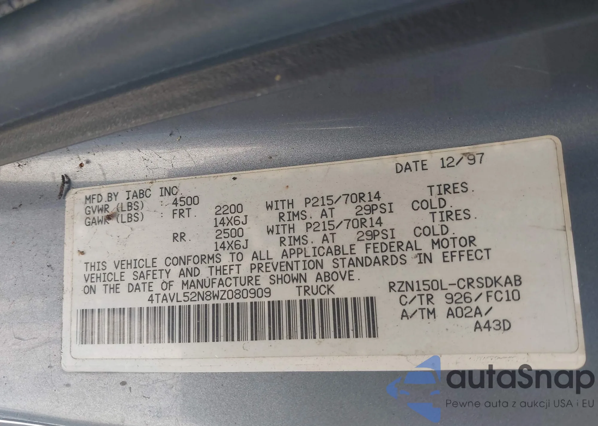 VIN: 4TAVL52N8WZ080909