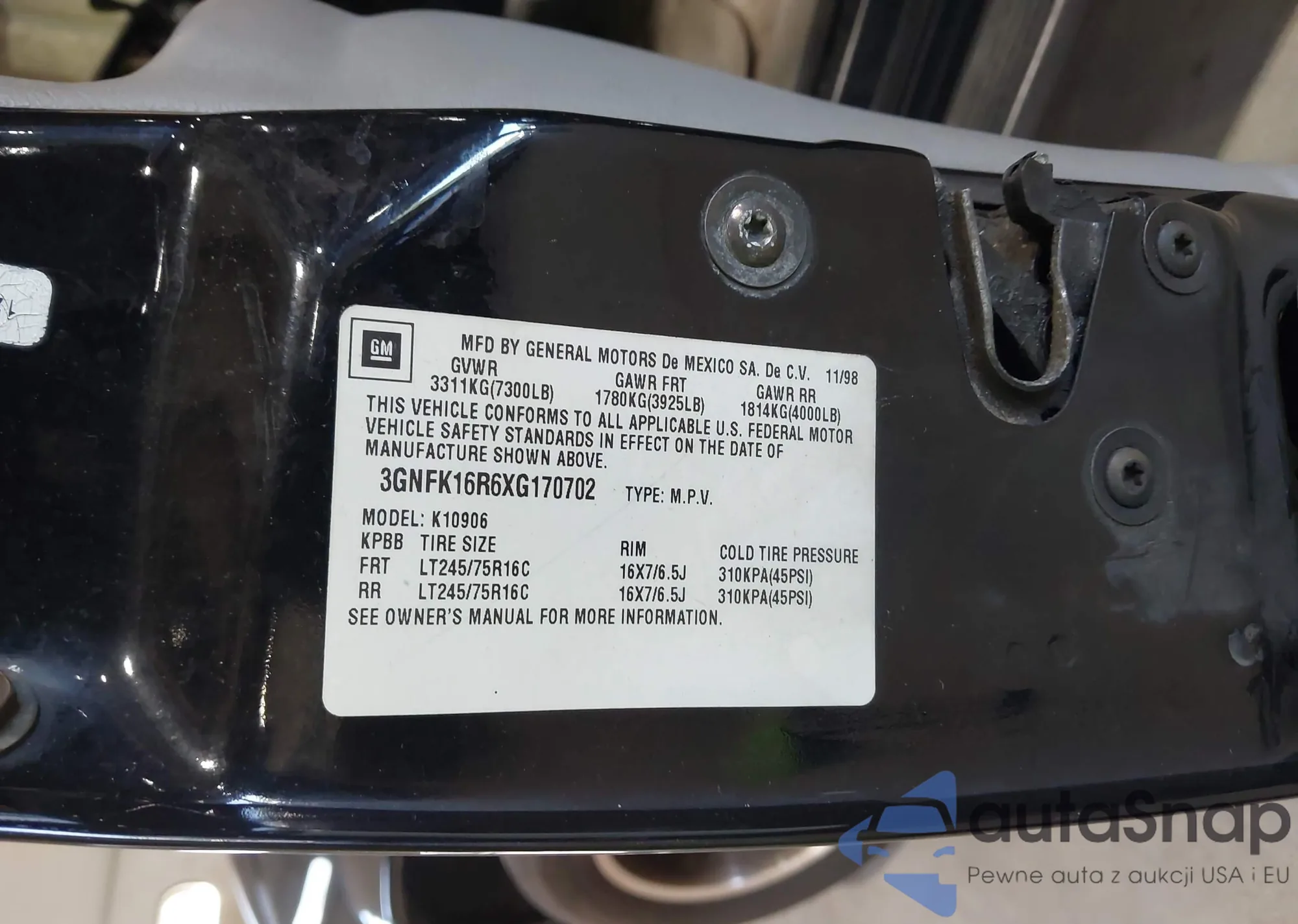 VIN: 3GNFK16R6XG170702