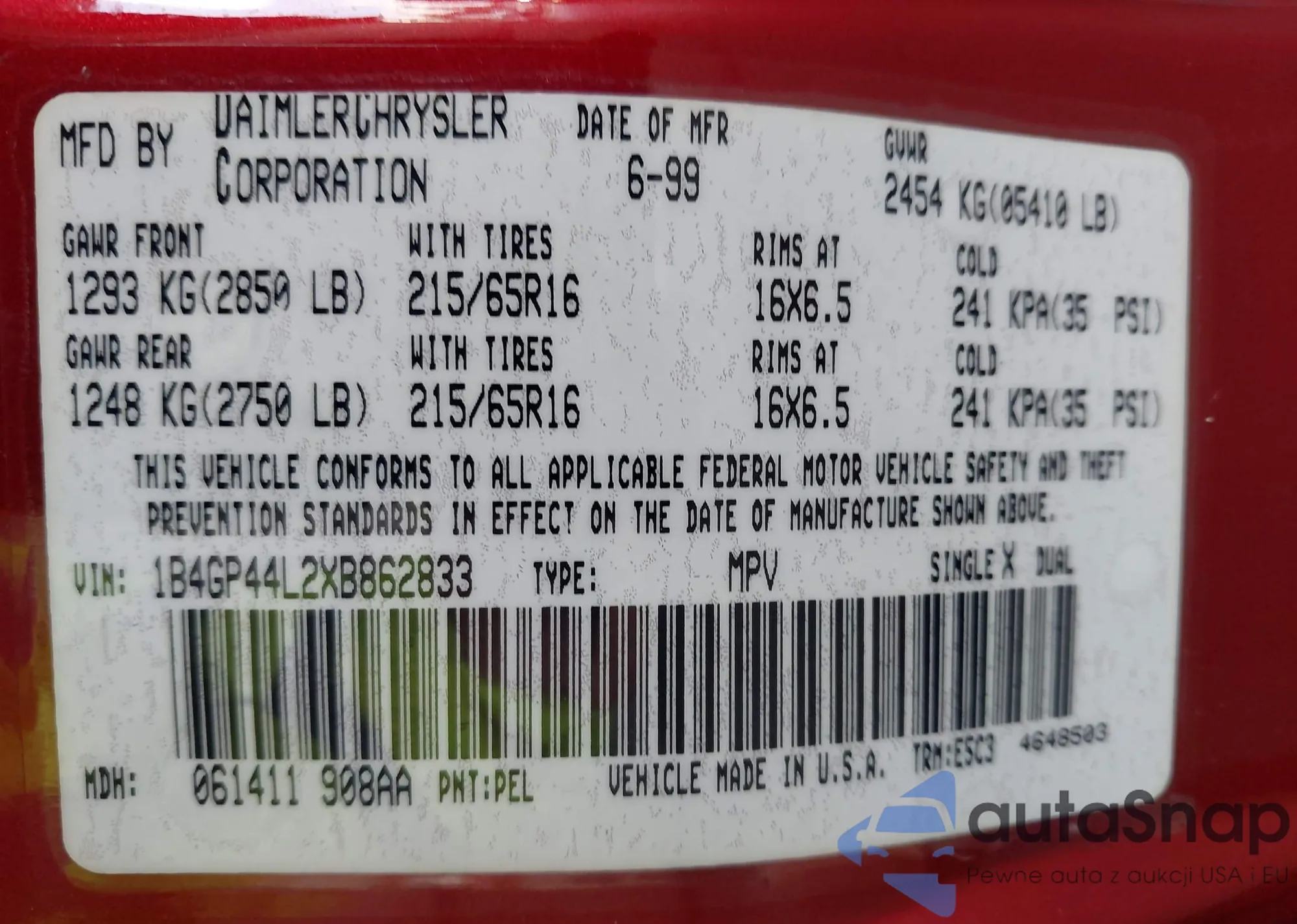 VIN: 1B4GP44L2XB862833