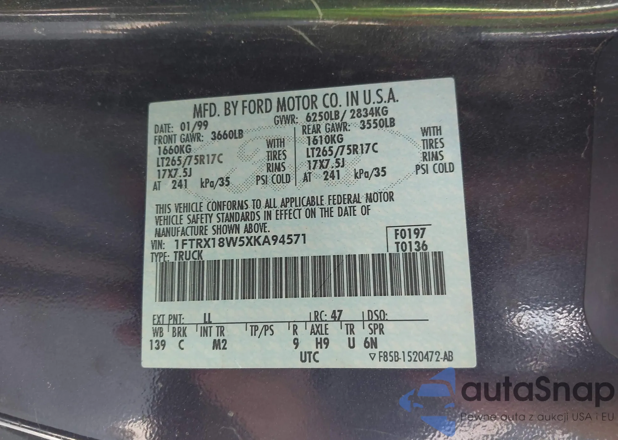 Ford F-150 1999 – Historia pojazdu (sprzedany na IAAI)