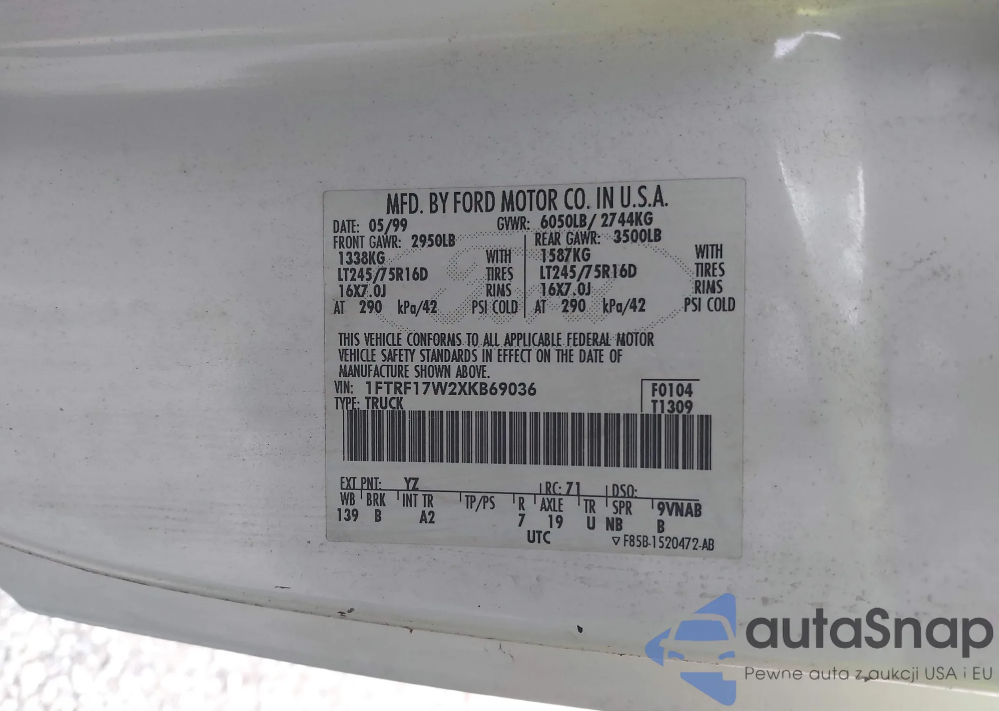 VIN: 1FTRF17W2XKB69036