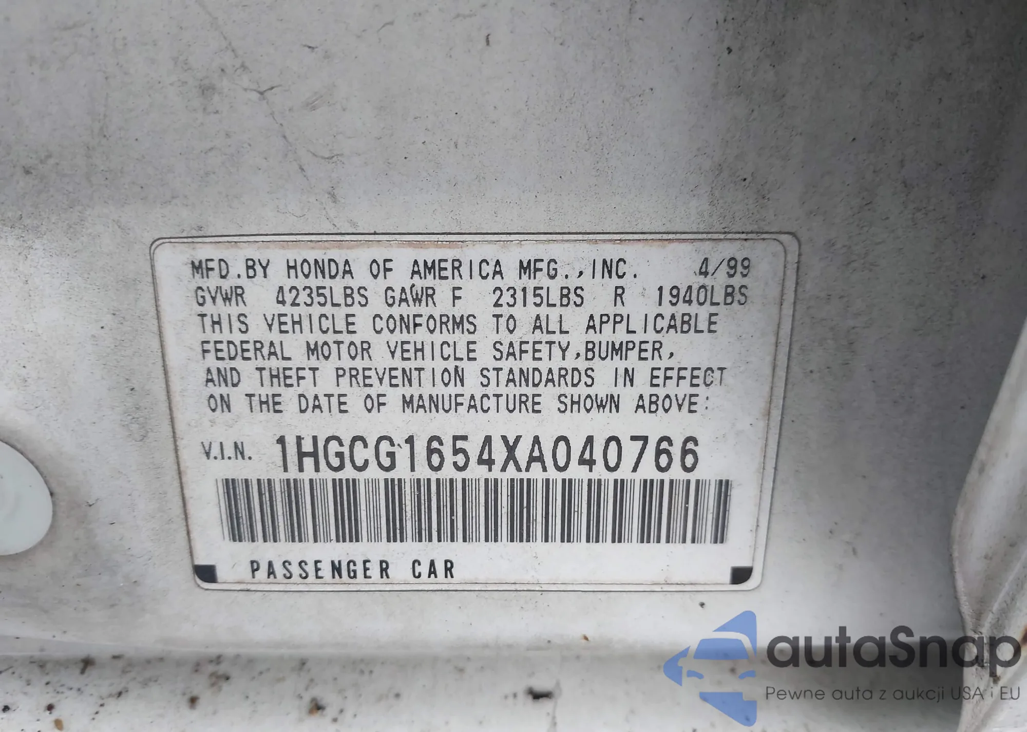 VIN: 1HGCG1654XA040766