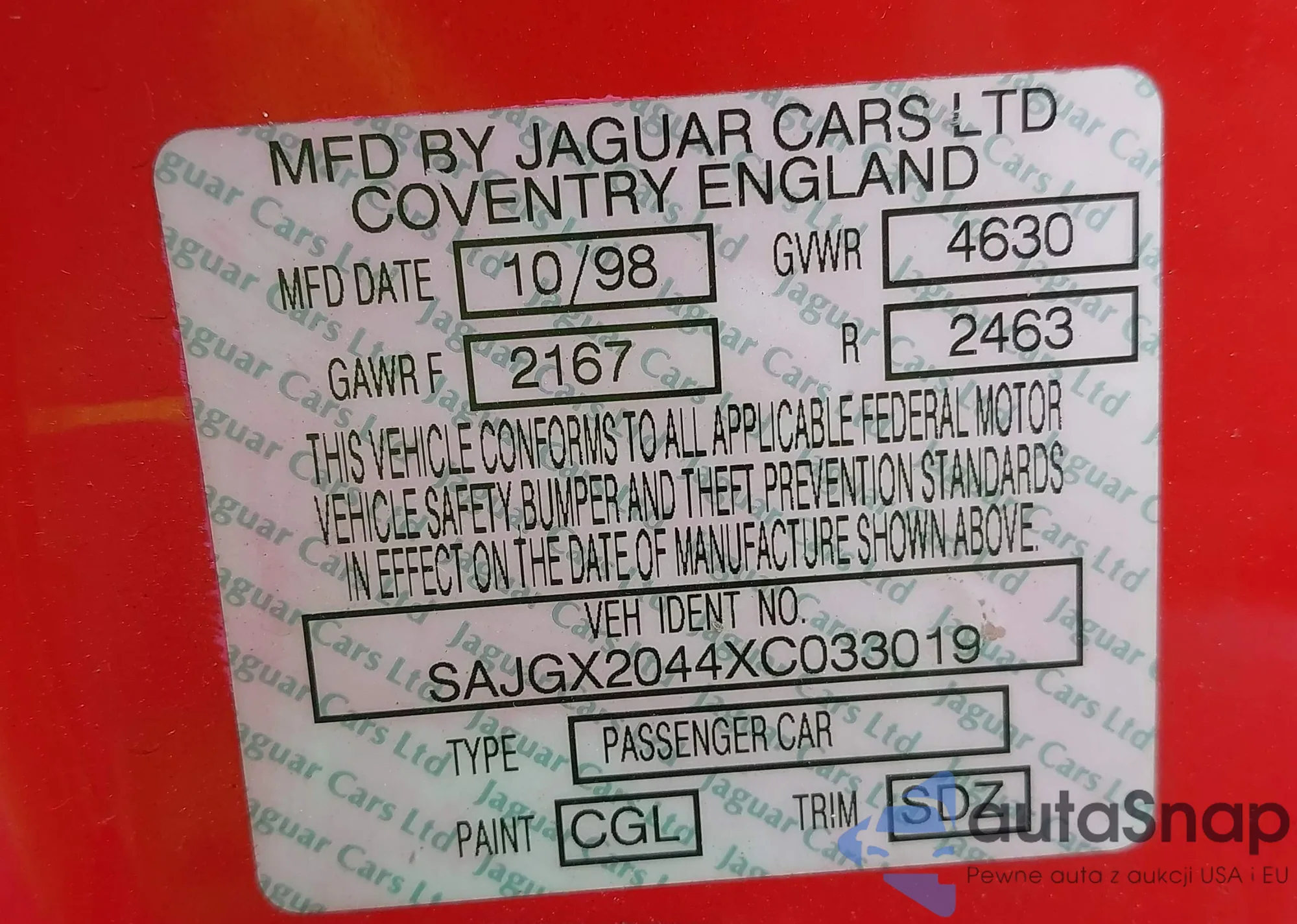 VIN: SAJGX2044XC033019