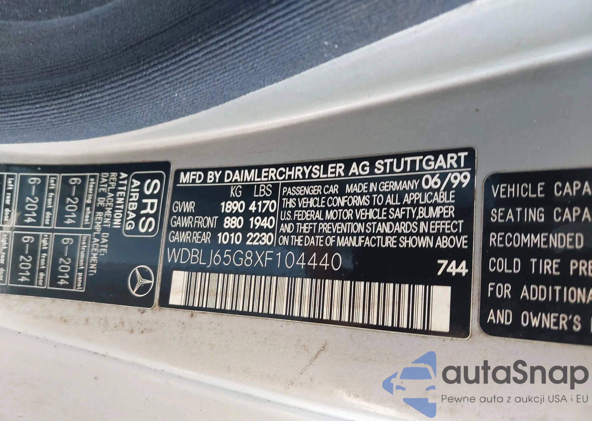 VIN: WDBLJ65G8XF104440