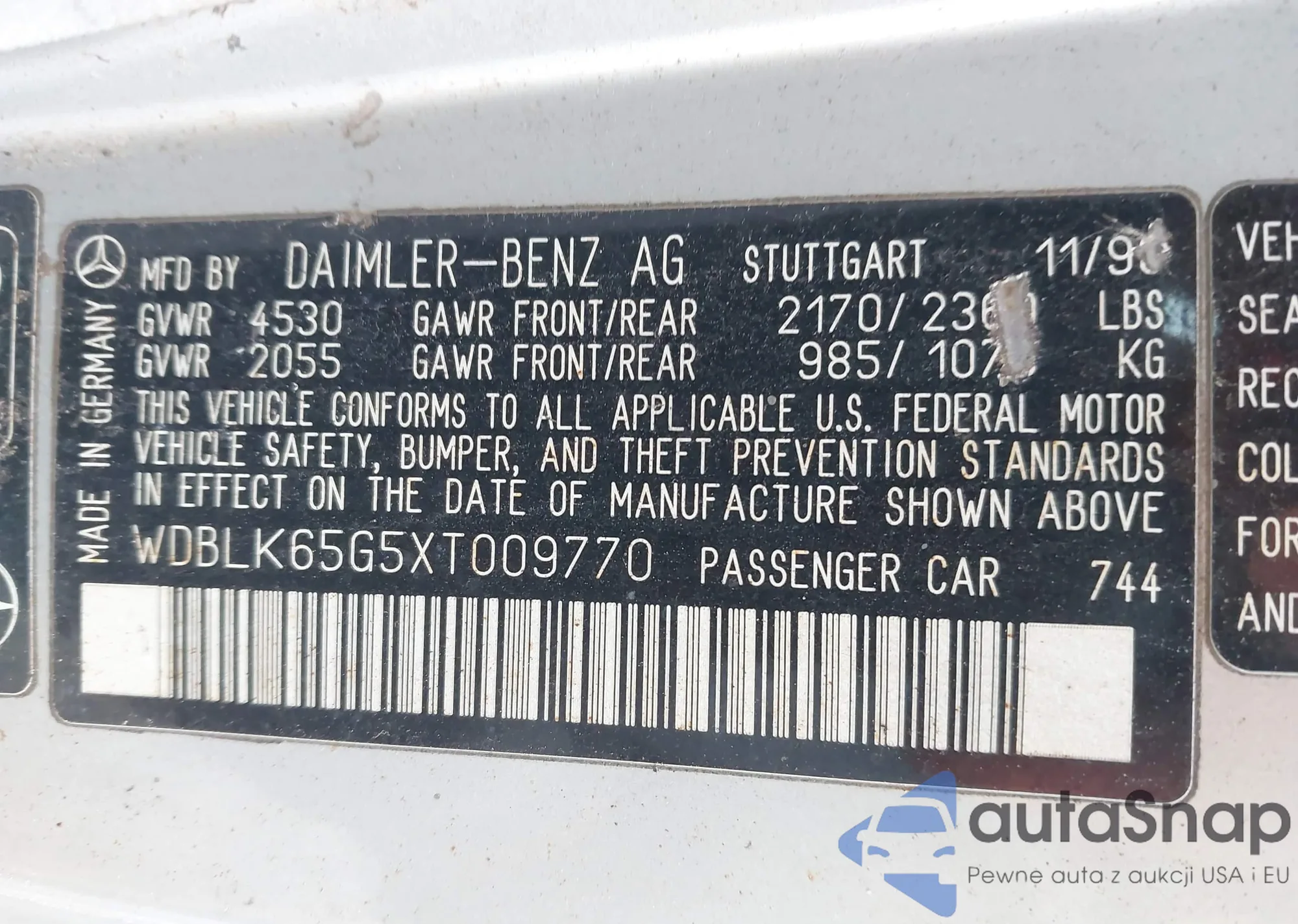 VIN: WDBLK65G5XT009770