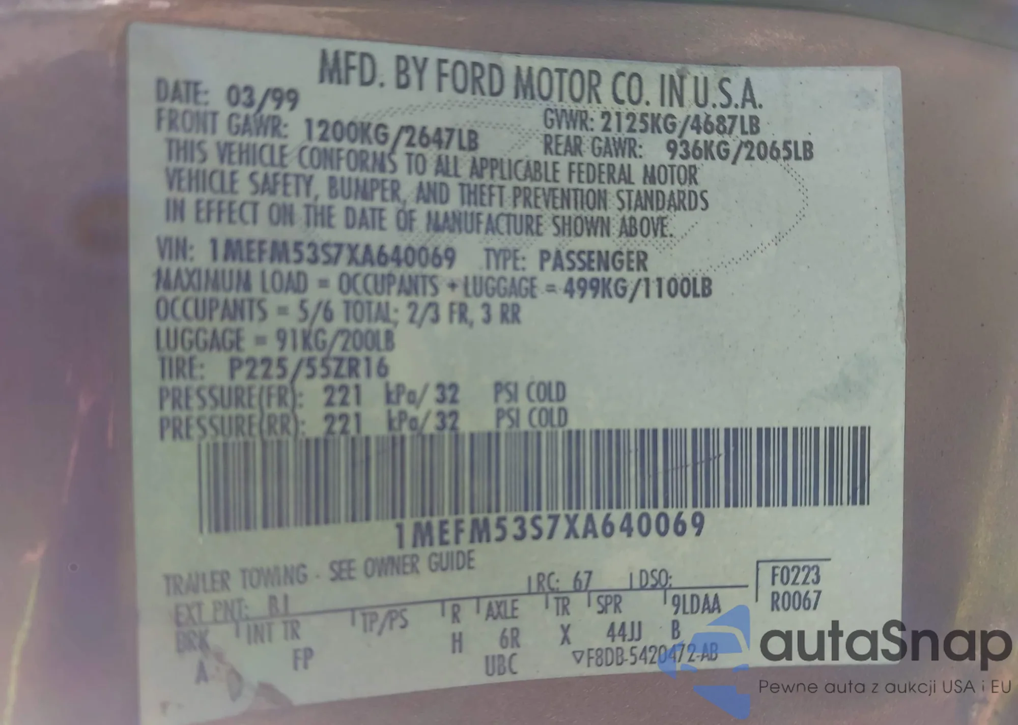• VIN: 1MEFM53S7XA640069